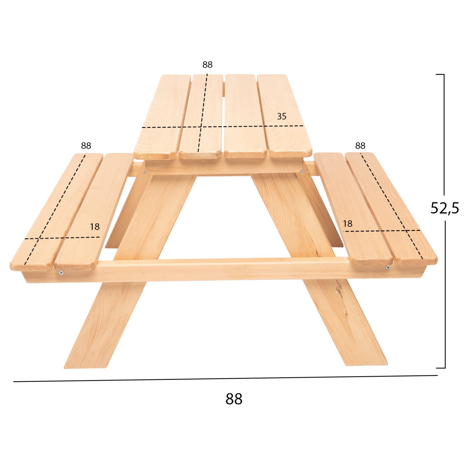 ΠΑΙΔΙΚΟ ΤΡΑΠΕΖΙ ΠΙΚΝΙΚ ΞΥΛΙΝΟ MIKO ΗΜ5843 ΦΥΣΙΚΟ 88x88x52,5Y εκ.
