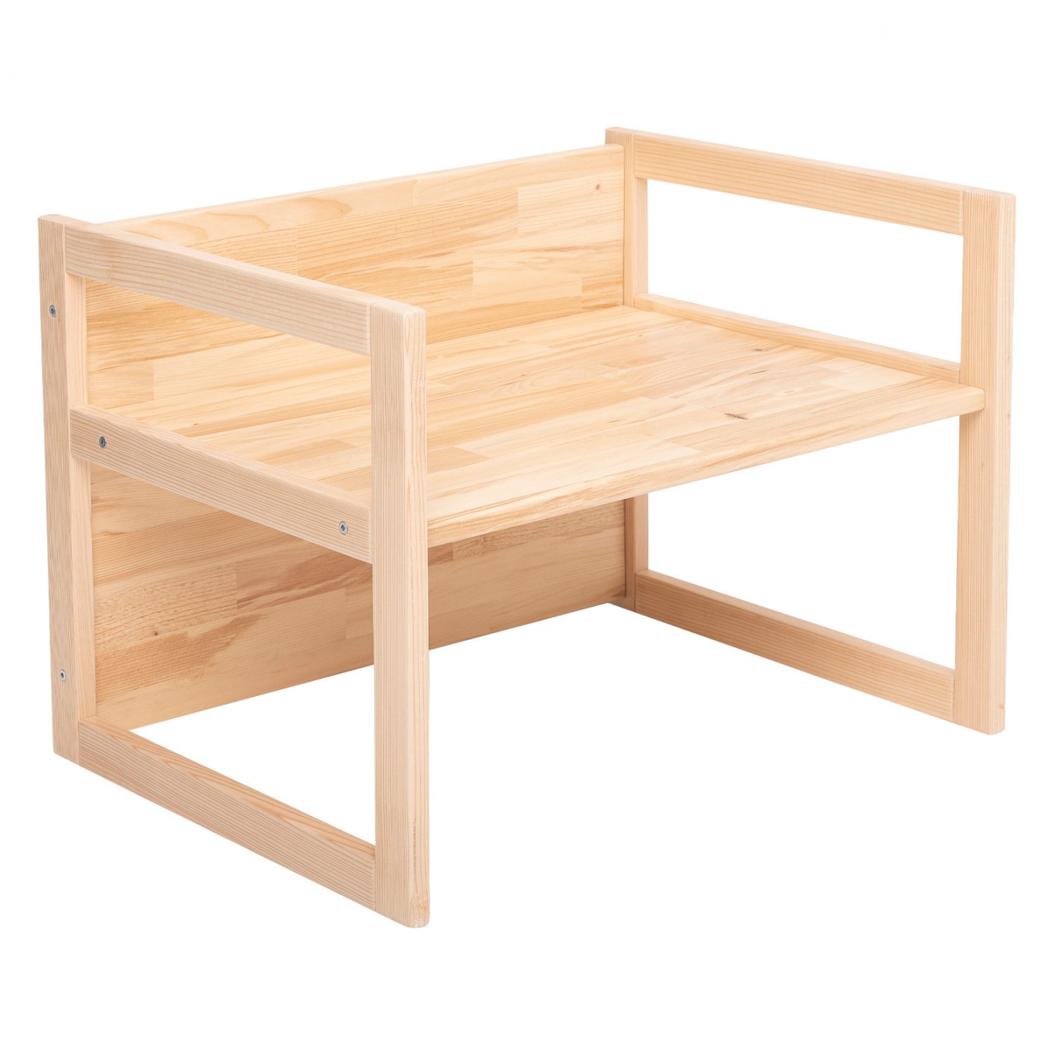 Παιδικό ξύλινο παγκάκι που μπορεί να μετατραπεί με μια μόνο κίνηση σε τραπέζι.