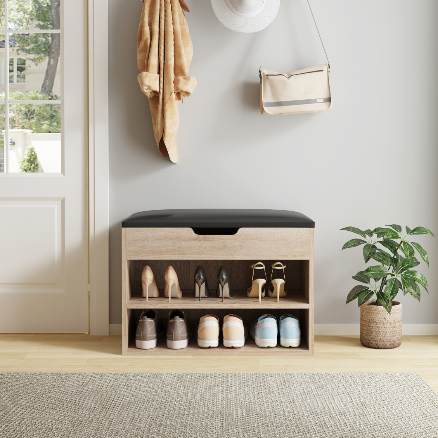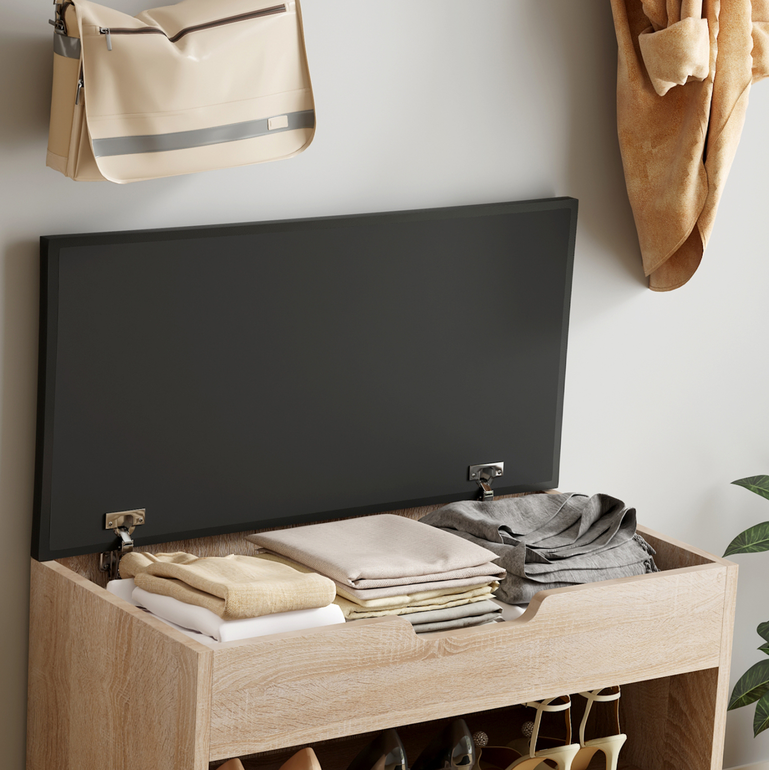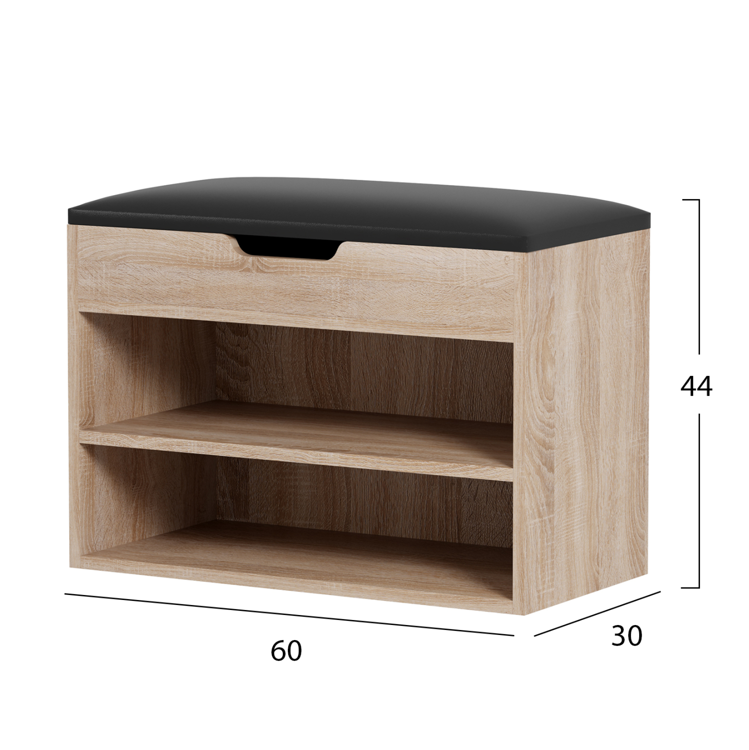 Σας αρέσει να είστε τακτοποιημένοι και καθαροί; Σας παρουσιάζουμε την παπουτσοθήκη μελαμίνης ROMIR σε SONAMA χρώμα με πολύ χαμηλά μεταλλικά πόδια. Ένα έπιπλο που εκτός από χώρο αποθήκευσης παπουτσιών, διαθέτει και κάθισμα επενδυμένο με PU leather σε ΚΑΦΕ χρώμα, για να φοράτε τα παπούτσια σας καθιστοί. Ο χώρος αποθήκευσης είναι ανοιχτός με 2 επίπεδα, ενώ κάτω από το κάθισμα που ανασηκώνεται υπάρχει ακόμα ένας, πιο ρηχός, χώρος αποθήκευσης αντικειμένων. Σκοπός μας είναι να σας βοηθήσουμε να οργανώσετε και να βελτιώσετε με τον καλύτερο δυνατό τρόπο την λειτουργικότητα του σπιτιού σας.