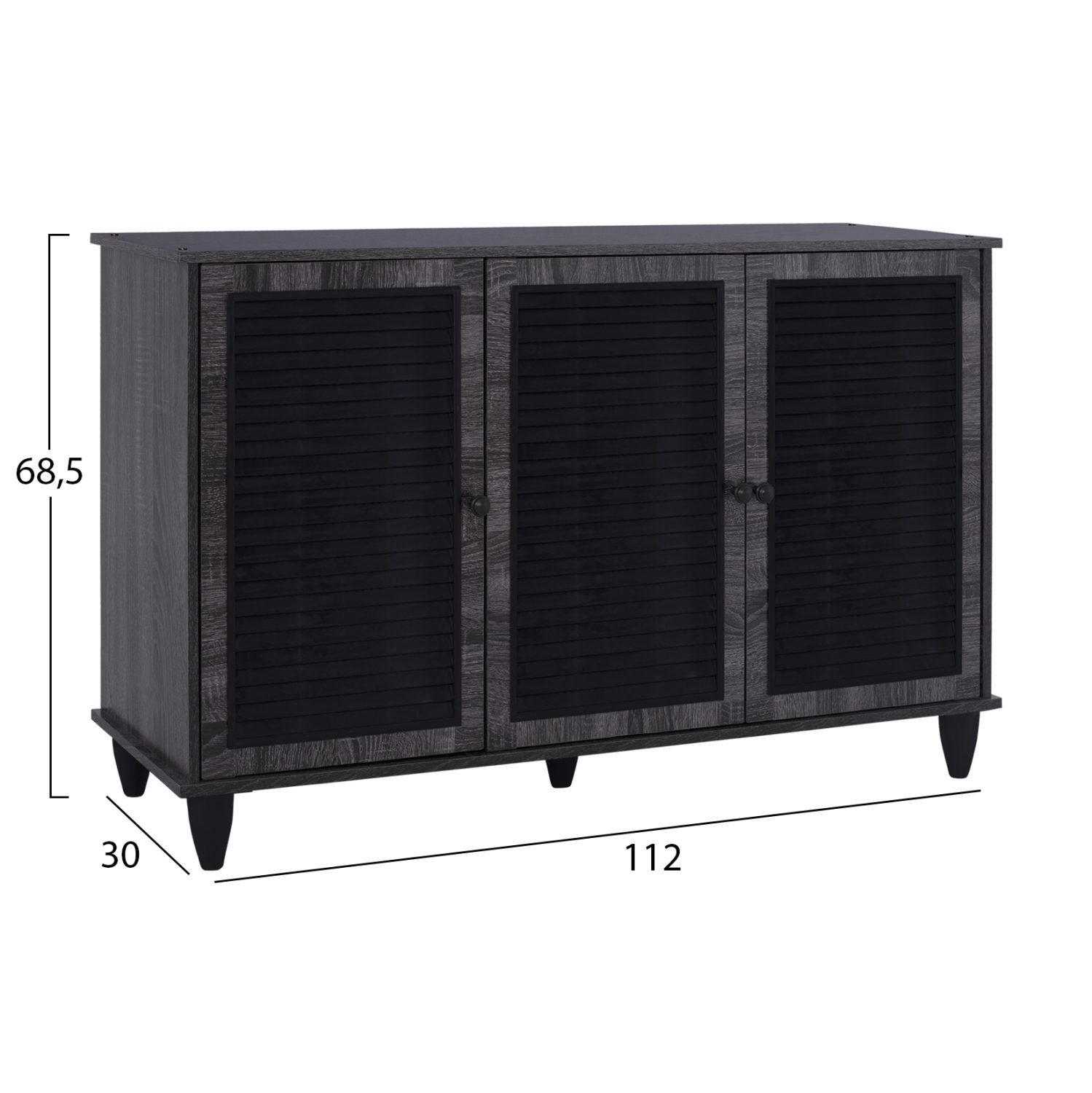 Παπουτσοθήκη ντουλάπι από μελαμίνη άριστης ποιότητας, σε ανθρακί χρώμα με 3 πόρτες.
