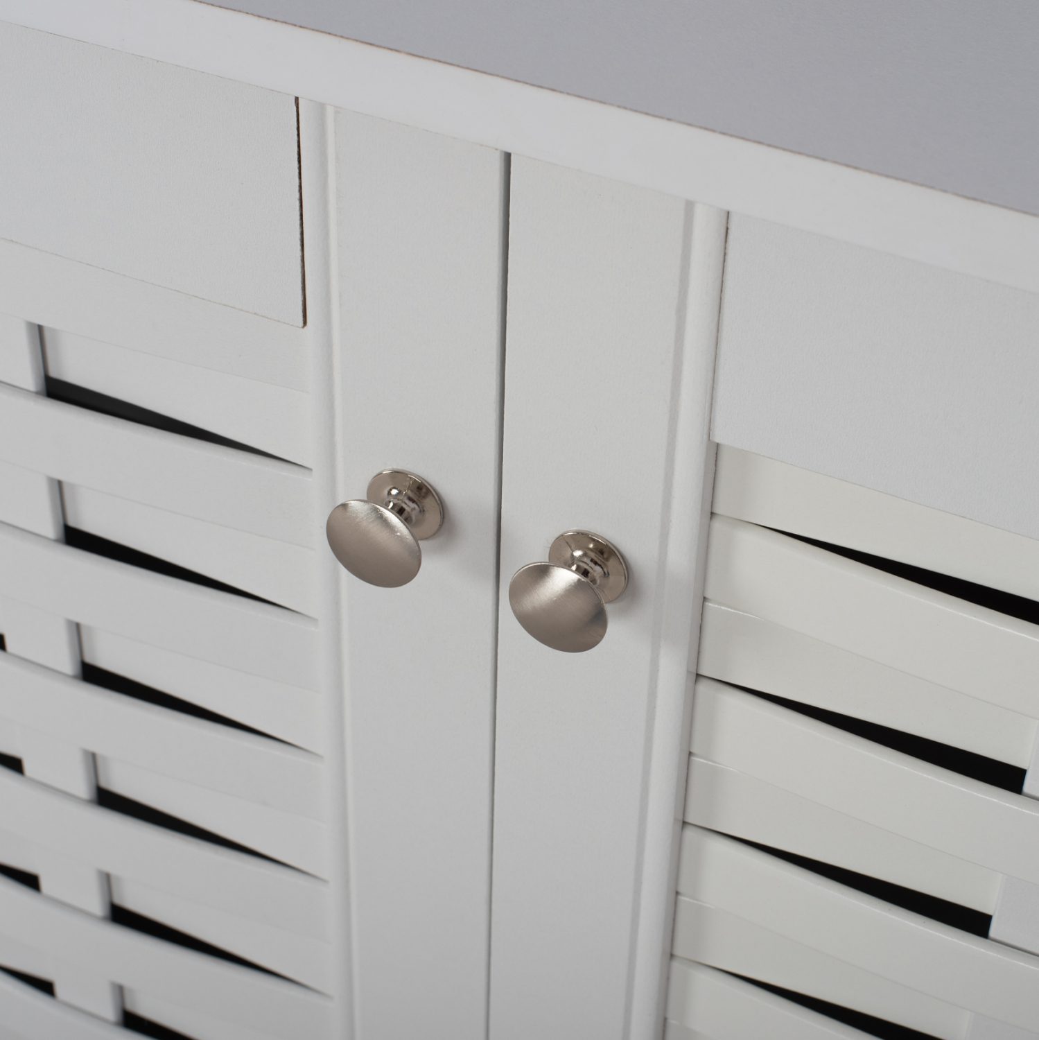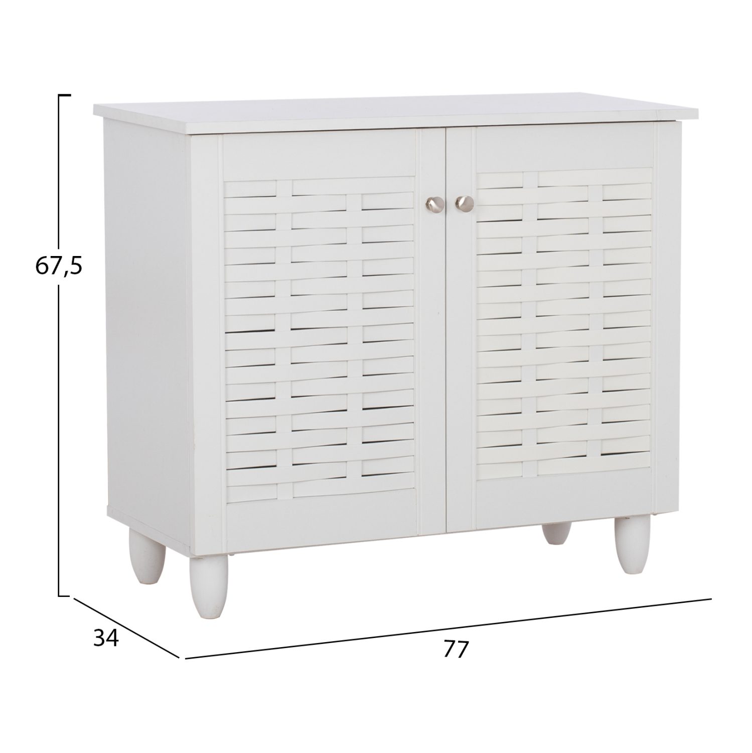Παπουτσοθήκη σε λιτό-κλασικό σχεδιασμό, κατασκευασμένη από ανθεκτική μελαμίνη υψηλής ποιότητας, σε λευκή απόχρωση.