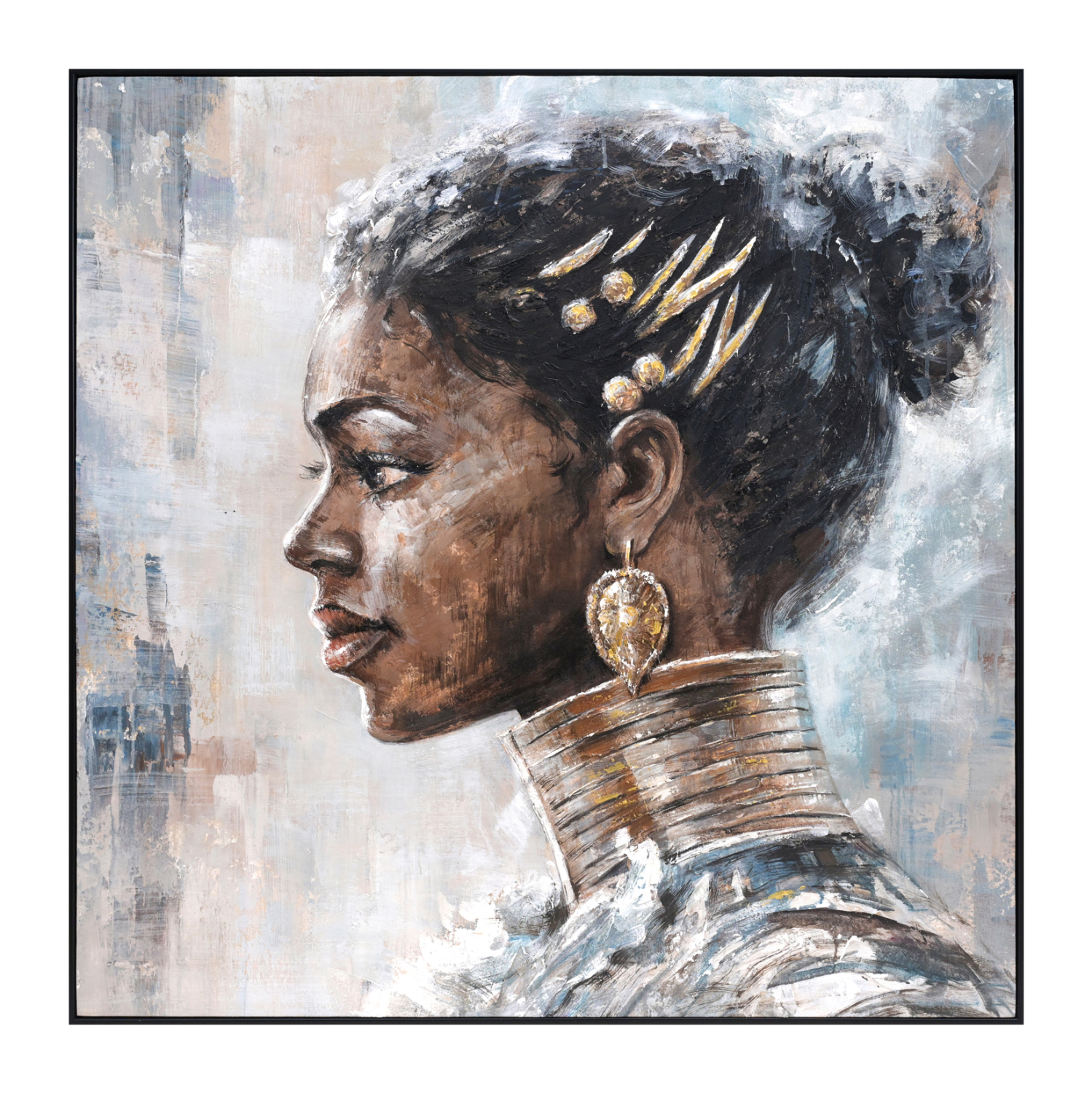 Ανάμεσα σε όλα τα διακοσμητικά στοιχεία, τα έργα τέχνης και ειδικά οι πίνακες ζωγραφικής παίζουν εξέχοντα ρόλο: όχι μόνο προσθέτουν χρώμα και αισθητική ομορφιά, αλλά δίνουν επίσης βάθος και νόημα στον χώρο μας. Ένας πίνακας μεταμορφώνει τον τρόπο που αντιλαμβανόμαστε έναν χώρο. Διακοσμήστε, λοιπόν, τον χώρο σας με έναν από τους καινούργιους πίνακες που προστέθηκαν στην γκάμα μας! Αυτός ο τετράγωνος πίνακας απεικονίζει το προφίλ μιας γυναίκας και είναι ζωγραφισμένος κατά 80% με το χέρι σε καμβά με εκτύπωση. Η κορνίζα είναι μαύρη από πολυστυρένιο.