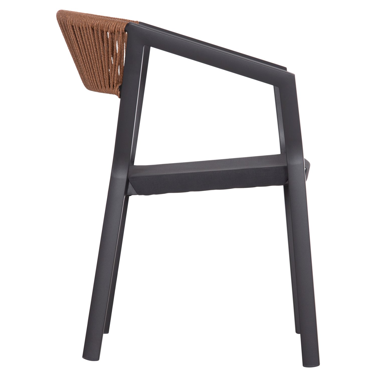 Η πλάτη της πολυθρόνας είναι επενδυμένη με πολυεστερικό RATTAN. Στα περισσότερα έπιπλα κήπου και γενικά σε έπιπλα για εξωτερικούς χώρους χρησιμοποιείται συνθετικό υλικό από PVC, δηλαδή τεχνητές ίνες υψηλής ποιότητας. Αυτό δίνει στην κατασκευή εξαιρετική αντοχή και ανθεκτικότητα σε ακραίες συνθήκες ζέστης ή κρύου.