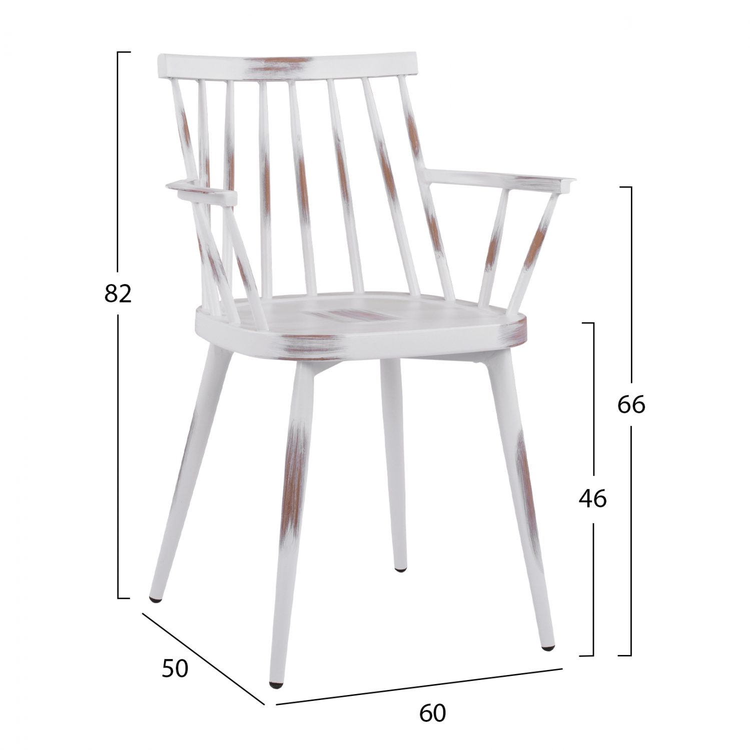 Πολυθρόνα αλουμινίου σε λευκή πατίνα απόχρωση, κατάλληλη για εξωτερικό χώρο αλλά και εσωτερικό χώρο.
