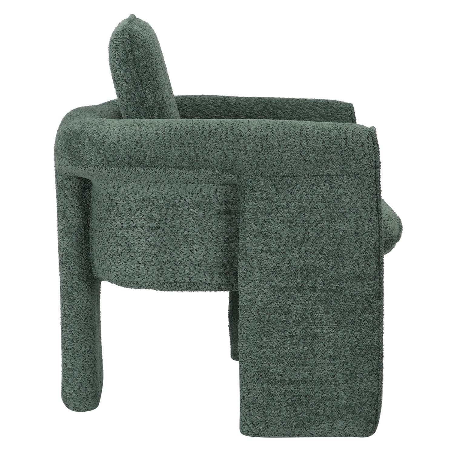 Ο σκελετός της πολυθρόνας είναι μεταλλικός με ηλεκτροστατική βαφή, ενώ ολόκληρη η επένδυση έχει γίνει με μπουκλέ ύφασμα εξαιρετικής ποιότητας και υφής. Μπουκλέ λέγεται οποιοδήποτε ύφασμα που έχει κόμπο-μπούκλα στην ύφανσή του. Κατασκευάζεται από σχεδόν όλες τις πρώτες ύλες (αν και συνήθως είναι συνθετικό) με ειδικές κλωστές με κόμπους ή πολύ στριμμένα νήματα, έτσι ώστε να έχει σγουρή επιφάνεια. Δεν τσαλακώνει και μπορεί να είναι μονόχρωμο, μελανζέ ,καρώ ή τουιντ.