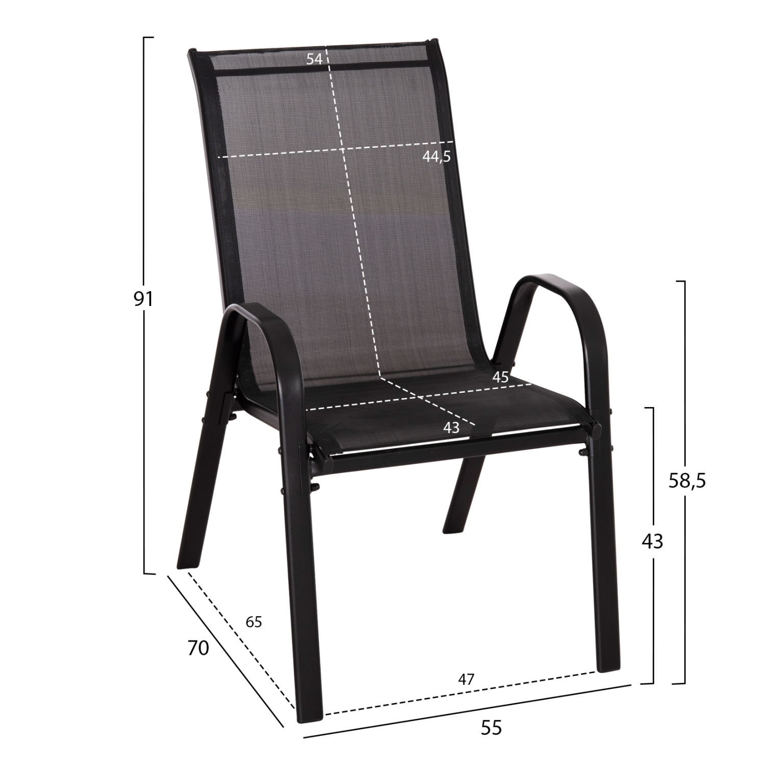 Το κάθισμα και η πλάτη είναι από textline (ή textilene) υψηλής ποιότητας 2×1 (540g). Αυτό είναι ένα παχύ, ισχυρό και ανθεκτικό πολυεστερικό ύφασμα. Σημαίνει ότι είναι κατασκευασμένο από πολυεστερικά νήματα με PVC.