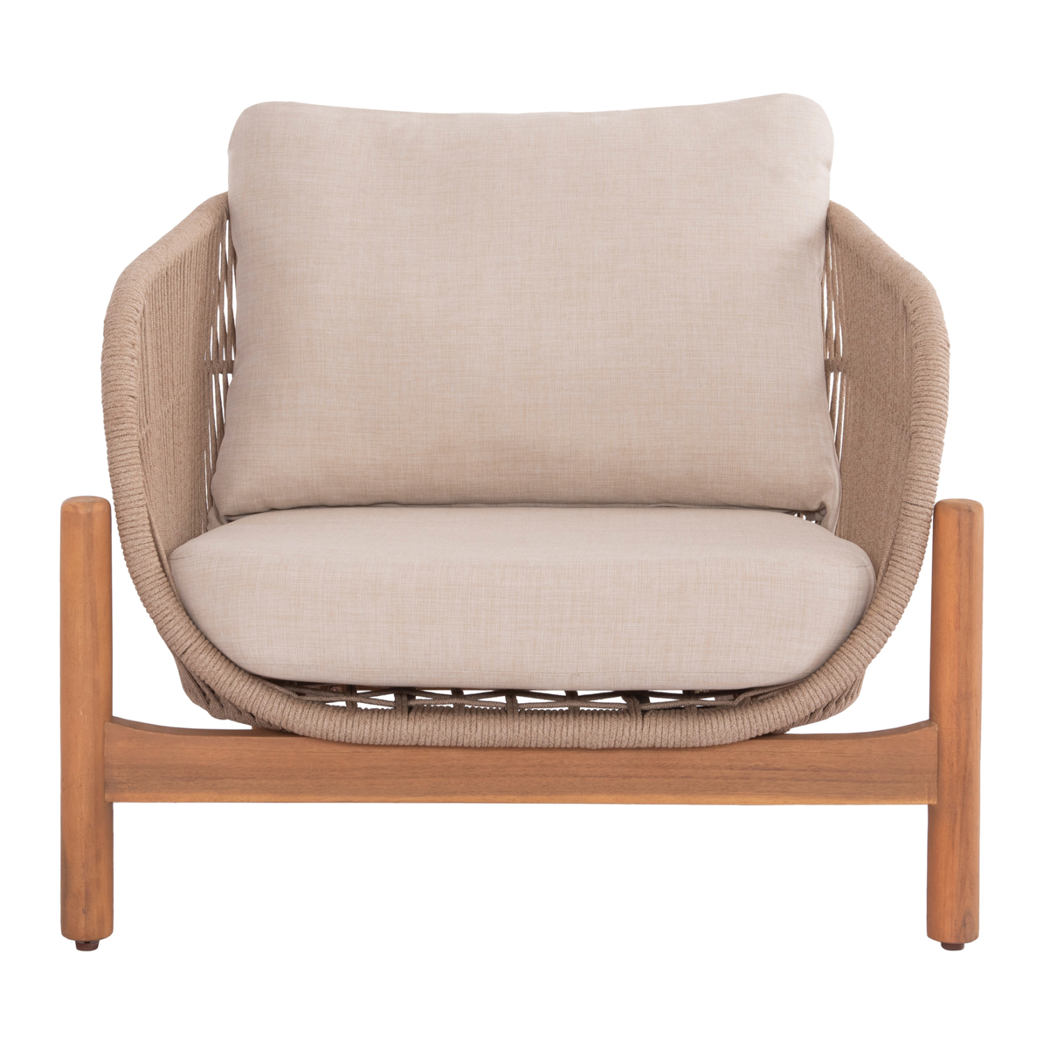 Σας παρουσιάζουμε την πολυθρόνα εξωτερικού χώρου SANJI. Διαθέτει σκελετό βάσης από ξύλο ακακίας σε ΦΥΣΙΚΟ χρώμα, και πλαίσιο καθίσματος από αλουμίνιο επενδυμένο με σχοινί σε ανοιχτό ΜΠΕΖ χρώμα! Τα μαξιλάρια είναι επενδυμένα με πολυεστερικό ύφασμα σε ΜΠΕΖ χρώμα επίσης, και διαθέτουν γέμισμα με μέτριας σκληρότητας αφρώδη υλικά για την μεγαλύτερη δυνατή άνεση, αλλά και φερμουάρ. Οι διαστάσεις της την καθιστούν ιδανική για να συμπληρώσει ένα ωραίο σετ σαλονιού για τον κήπο ή το μπαλκόνι!