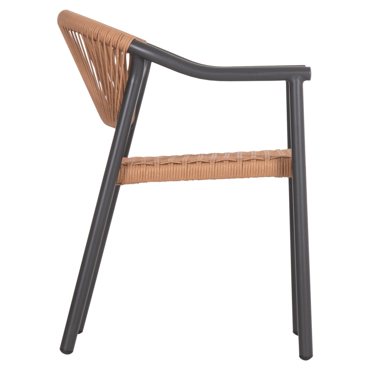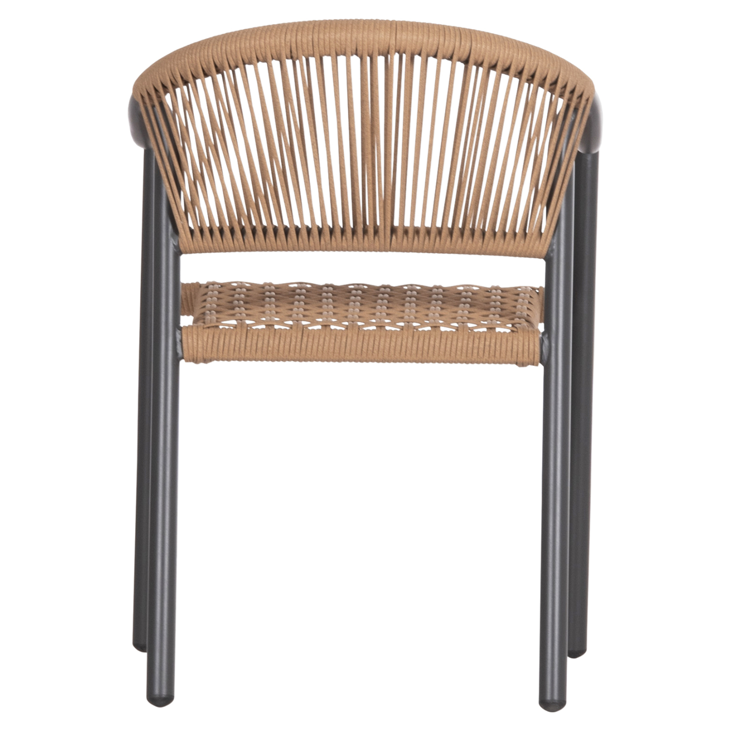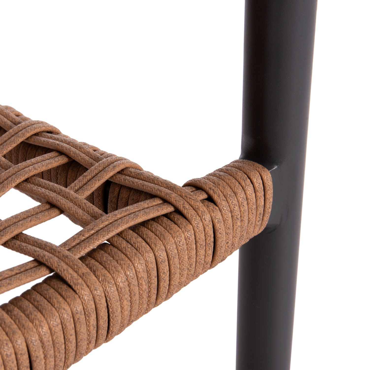 Η πολυθρόνα είναι επενδυμένη με πολυεστερικό RATTAN σε «τυλιχτή» μορφή (twisted) που μοιάζει με σχοινί.