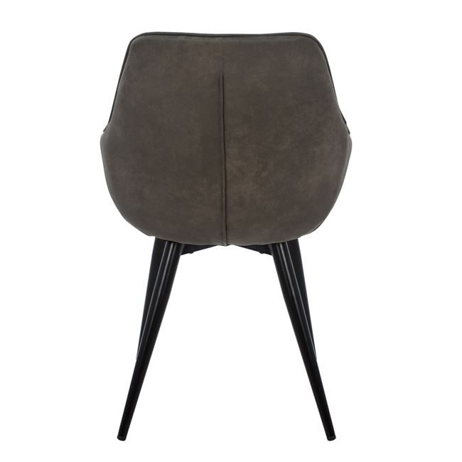 Πολυθρόνα MANDO με μπράτσα, με επένδυση από ύφασμα nubuck σε γκρι χρώμα και μεταλλικά μαύρα πόδια.