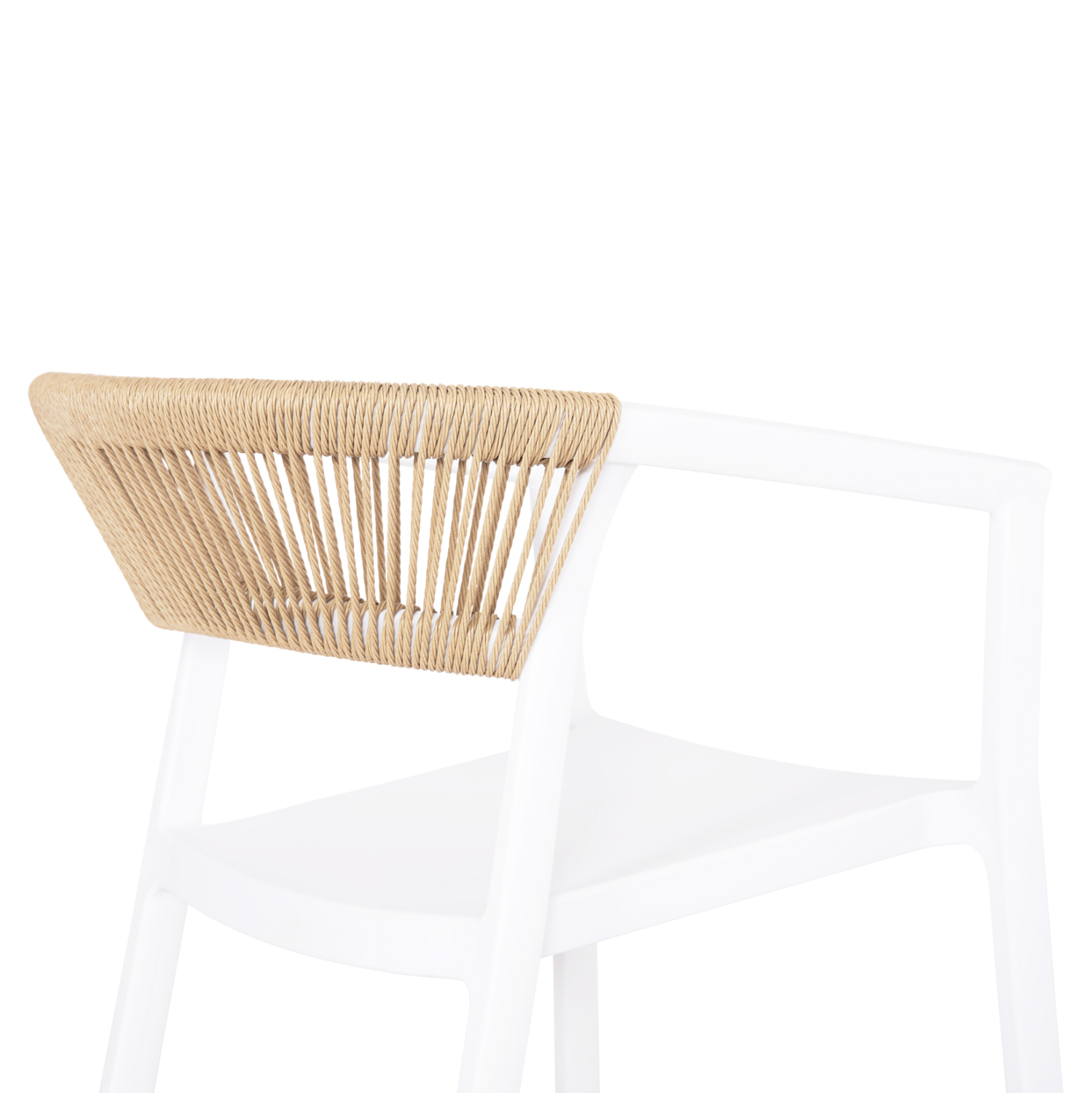 Η πολυθρόνα BOGI είναι από μονοκόμματο πολυπροπυλένιο σε ΛΕΥΚΟ χρώμα με ελαφρώς κυρτή πλάτη επενδυμένη με συνθετικό σχοινί σε ΜΠΕΖ χρώμα, και πρακτικά μπράτσα. Όλη η κατασκευή είναι ελαφριά και άνετη, και θα γίνει το αγαπημένο κάθισμα σε όποιο χώρο κι αν τοποθετηθεί χάρη στην πρακτικότητά του. Ιδανική επιλογή και για επαγγελματική χρήση, όπως σε catering κτλ.