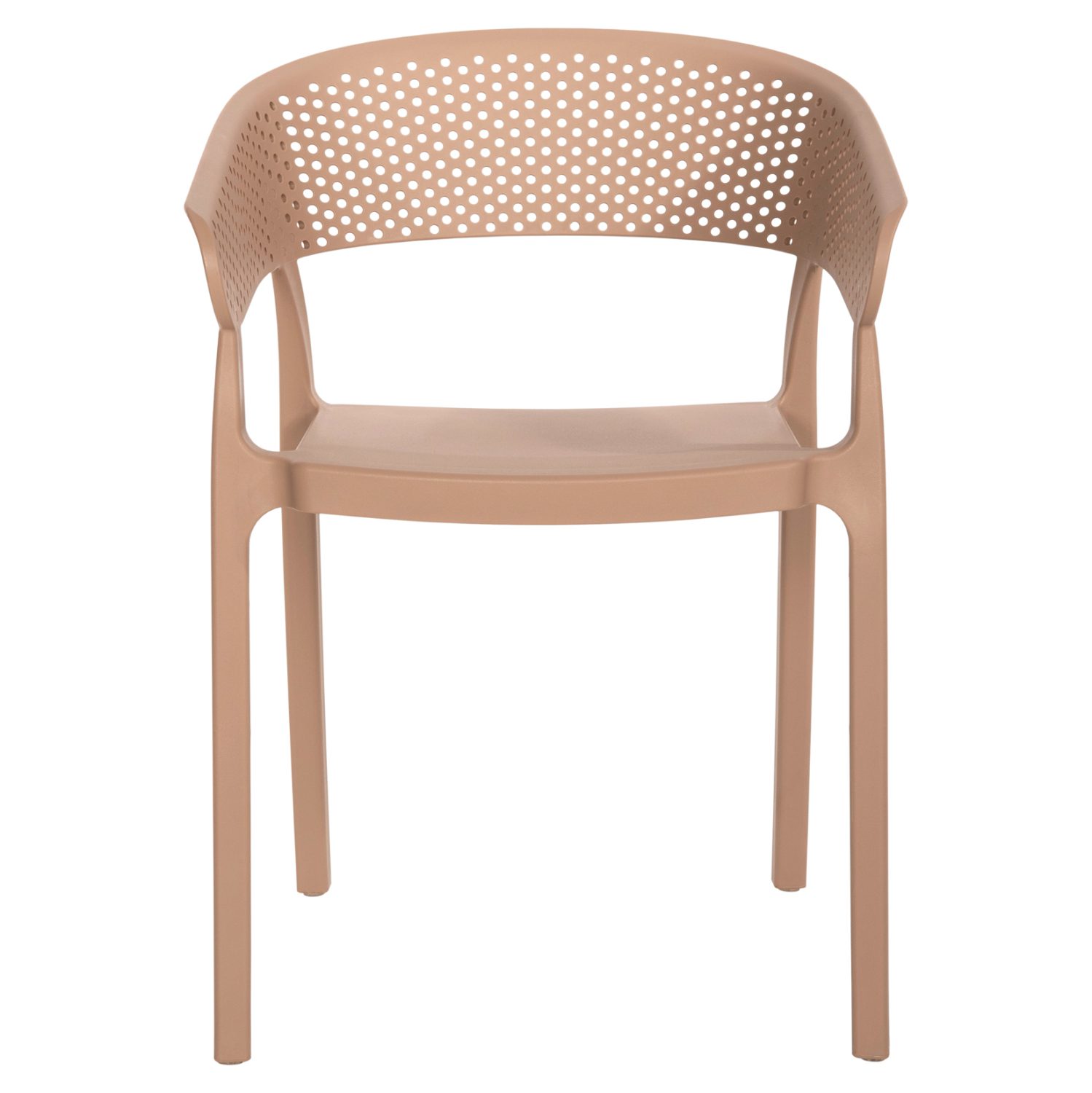 Πολυθρόνα πολυπροπυλενίου σε ΚΑΠΟΥΤΣΙΝΟ χρώμα. Ιδανική πρόταση για χρήση σε εξωτερικούς χώρους, είτε επαγγελματικούς (χώροι δεξιώσεων, εταιρείες catering, κλπ.) είτε για το σπίτι. Η πολυθρόνα αποτελείται από ένα λείο κάθισμα και μια ημικυκλική, ανεξάρτητη και «τρυπητή» πλάτη και μπράτσα. Είναι πανέμορφη και θα αναβαθμίσει αισθητικά κάθε εξωτερικό χώρο.