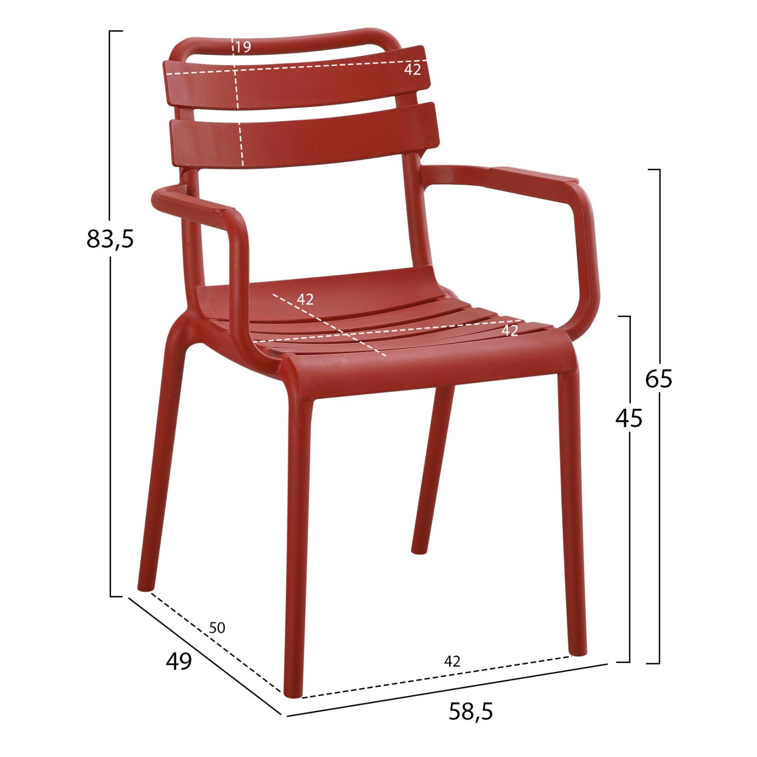 Η πολυθρόνα PHILLY είναι μια πολυθρόνα εξωτερικού χώρου σε μοντέρνα υλοποίηση. Είναι ποιοτική και κομψή στην όψη, ενώ το καμπυλωτό κάθισμα στο μπροστά μέρος όπως και τα σχετικά ψηλά της μπράτσα την καθιστούν αναπαυτικότατη. Όλη η πολυθρόνα είναι από πολυπροπυλένιο σε ΚΟΚΚΙΝΟ χρώμα. Είναι στοιβαζόμενη, ελαφριά και άνετη, ιδανική επιλογή και για επαγγελματική χρήση, όπως σε catering κτλ.