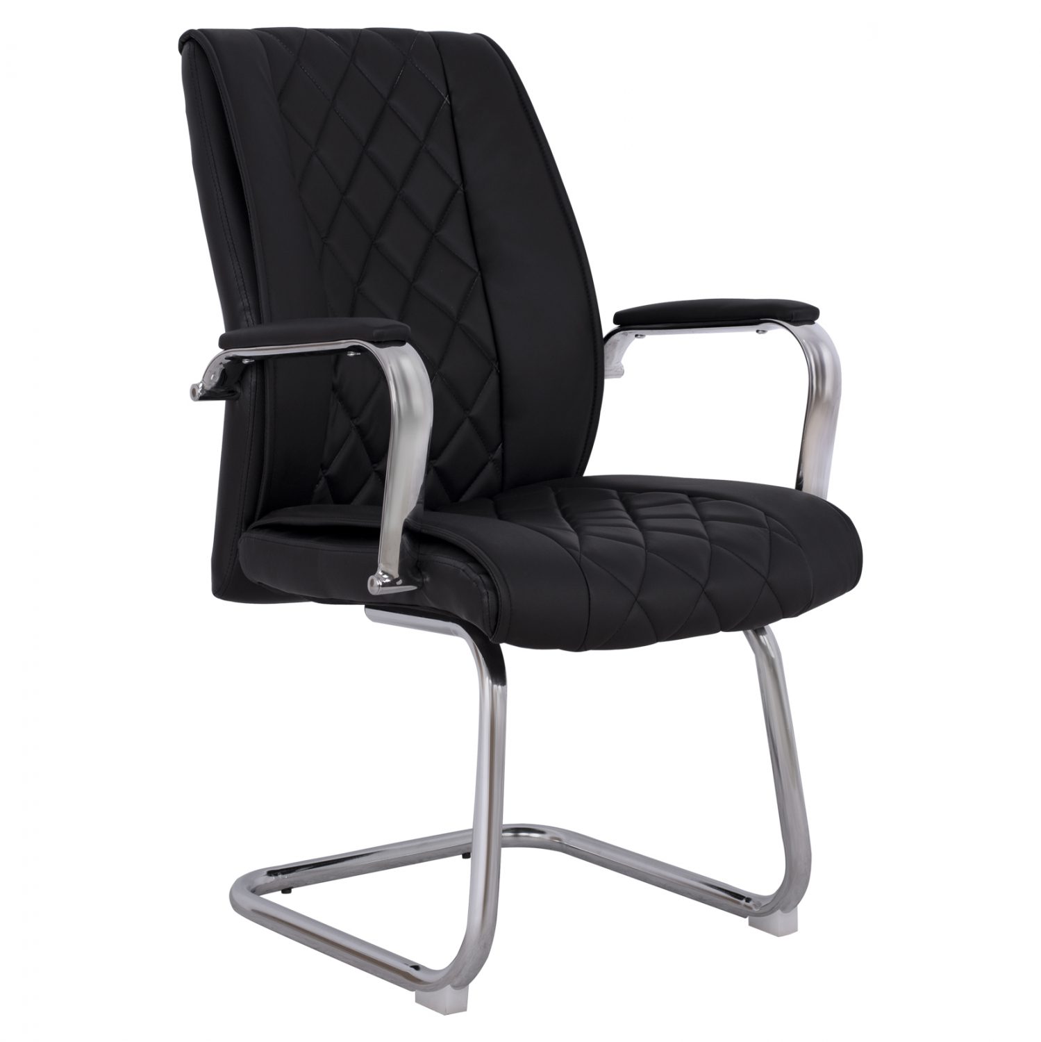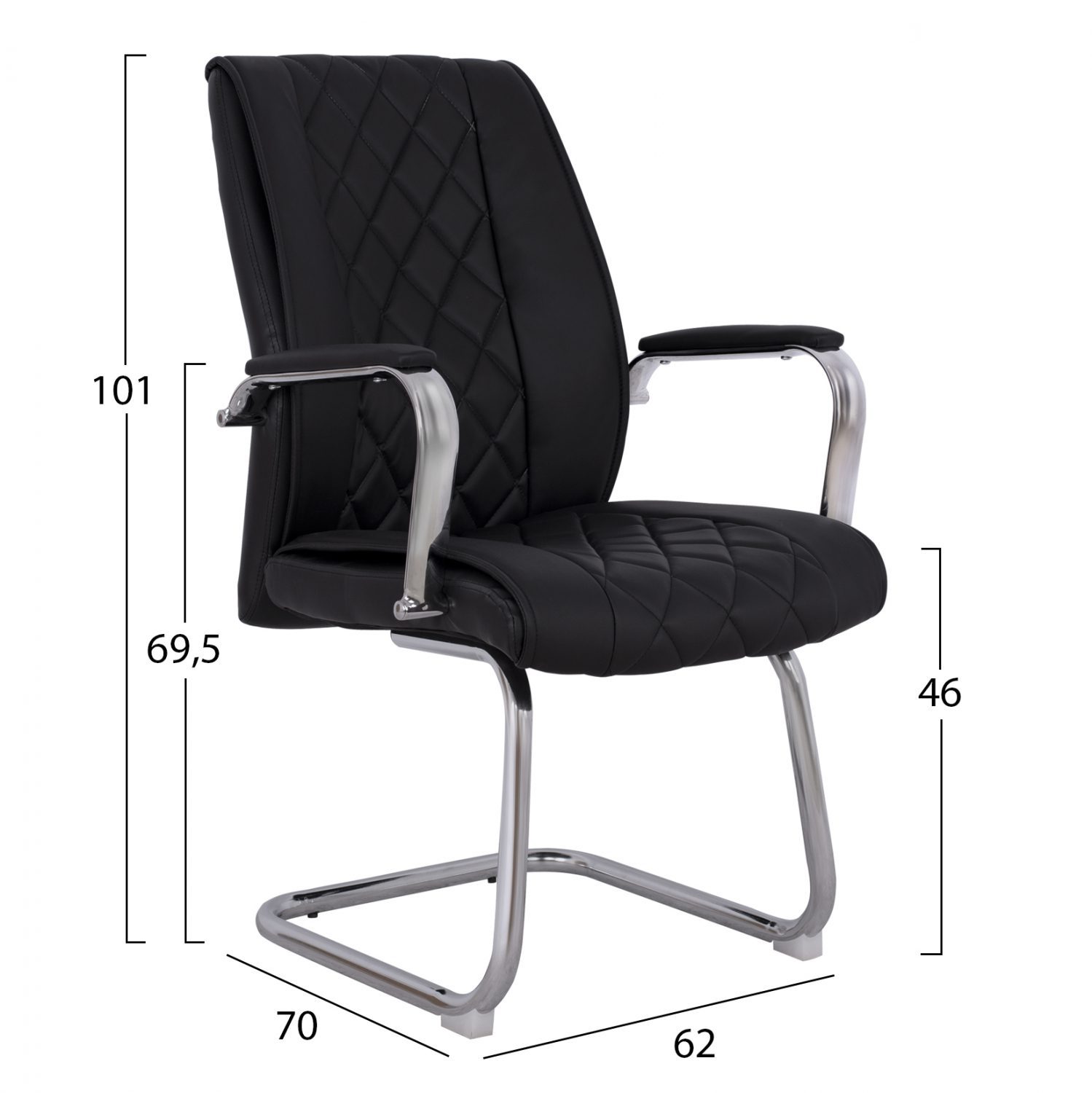 Καρέκλα συνεργασίας με μπράτσα, από υψηλής ποιότητας PU σε μαύρη απόχρωση και χρωμιομένο σκελετό.