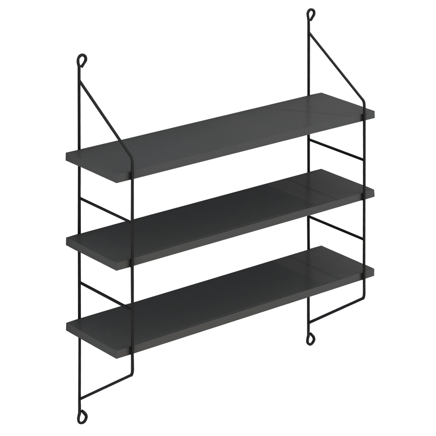 Το τριπλό ράφι τοίχου ACHALA συνδυάζει το μοντέρνο design με την πρακτικότητα. Αποτελείται από 3 ίδιου μεγέθους ράφια σε ΣΚΟΥΡΟ ΓΚΡΙ χρώμα. Τα ράφια μοντάρονται σε έναν μεταλλικό μαύρο σκελετό, ο οποίος βιδώνεται στον τοίχο.