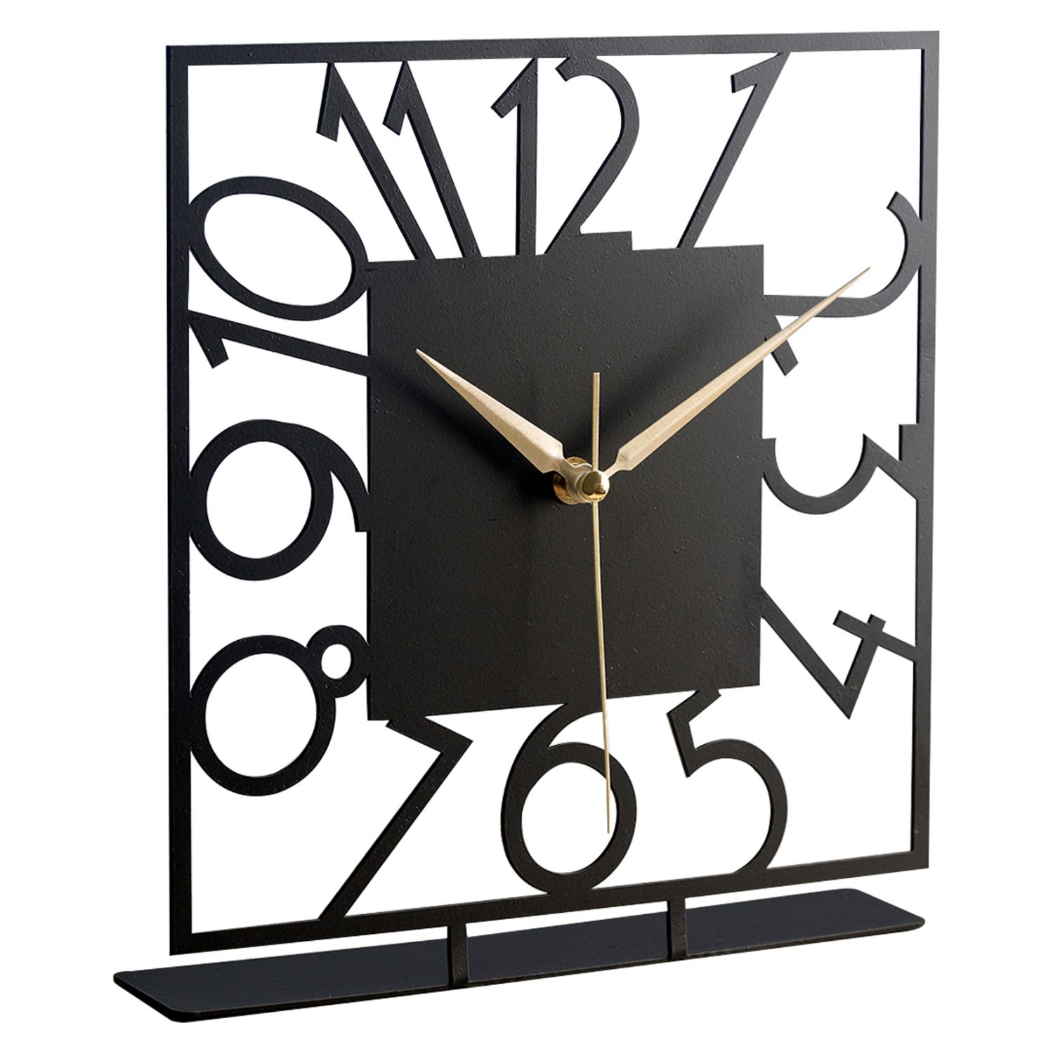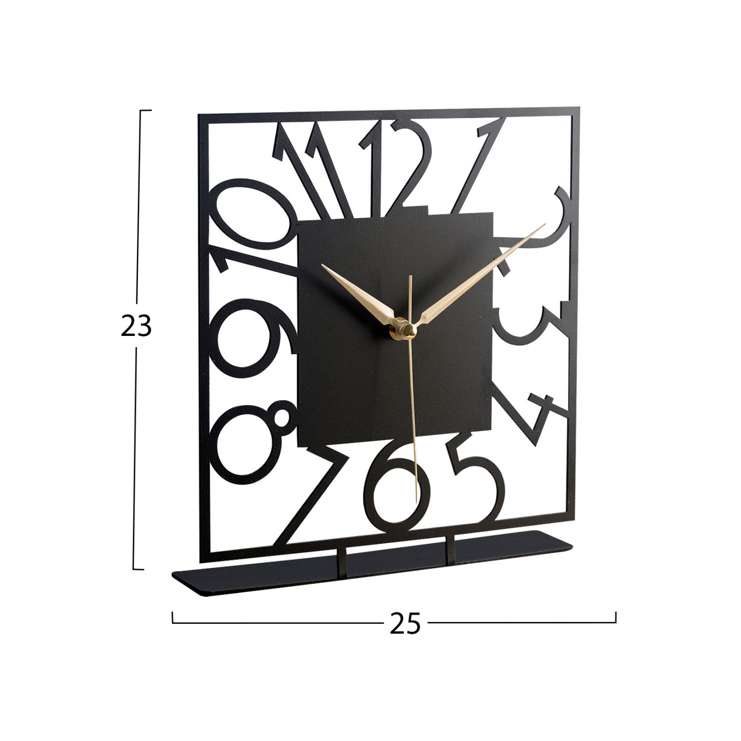 Ρολόι επιτραπέζιο σε μαύρη απόχρωση με χρυσές λεπτομέρειες στους δείκτες.