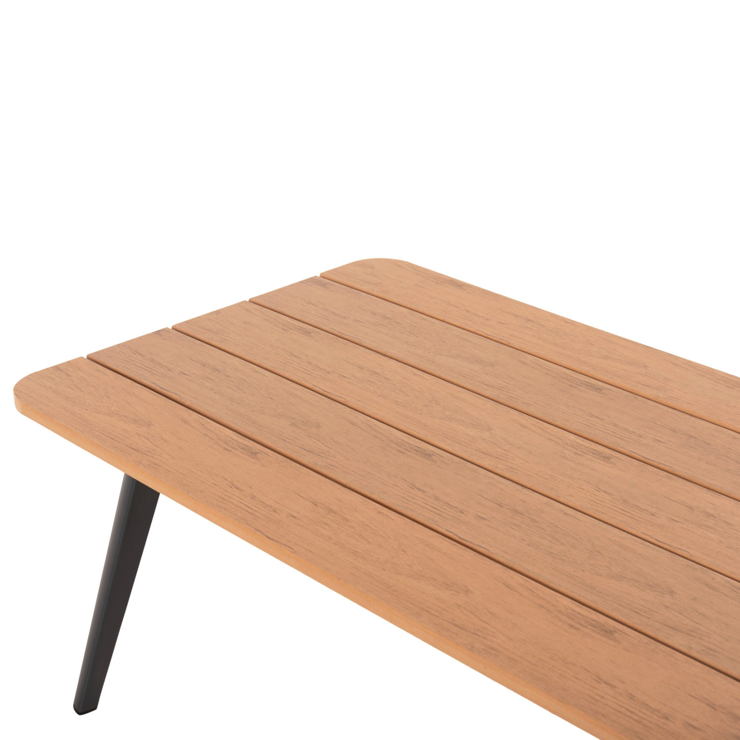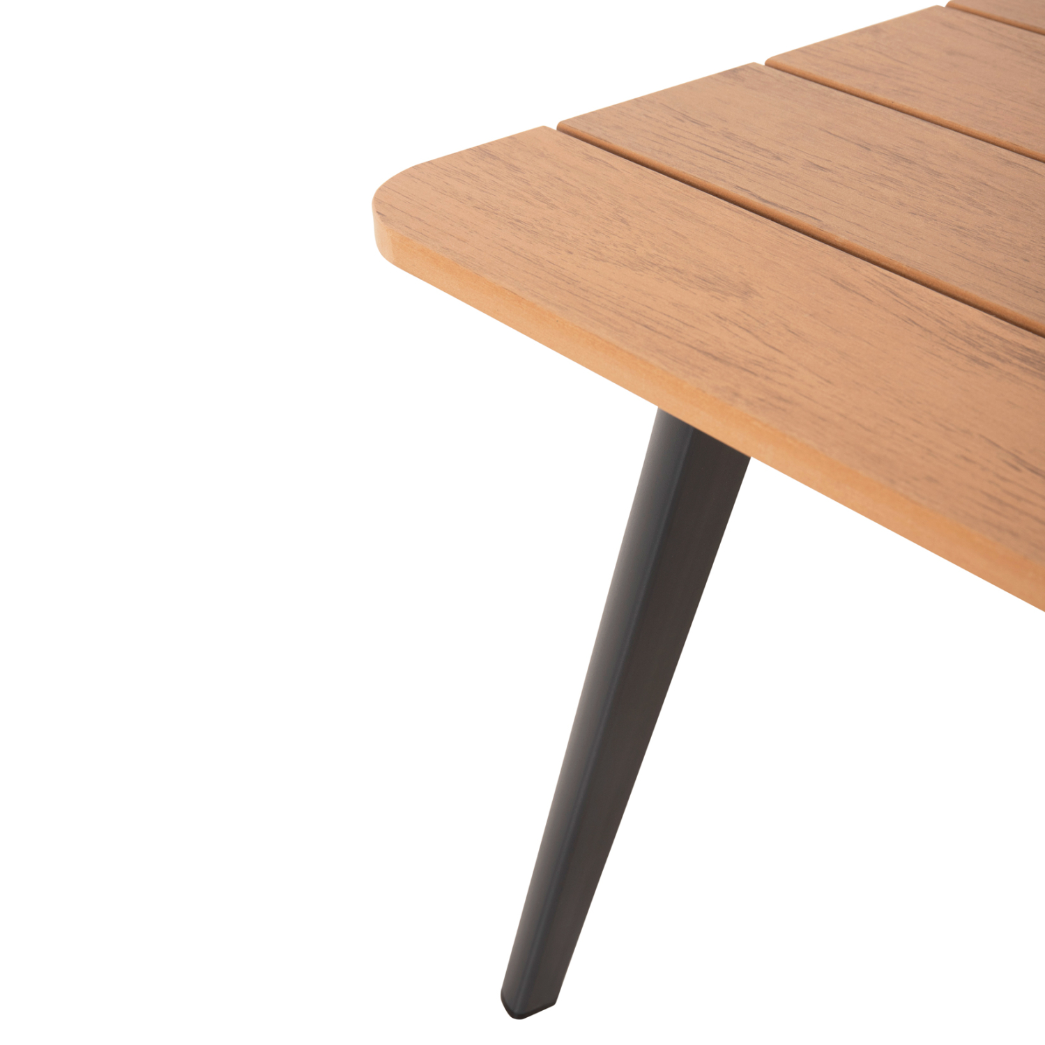 Το polywood της επιφάνειας του τραπεζιού είναι υλικό κατασκευασμένο εξολοκλήρου από HDPE(High-Density PolyEthylene), δηλαδή είδος πλαστικού ιδιαίτερα ανθεκτικό και αδιάβροχο, που έχει υποστεί επεξεργασία για να μοιάζει με ξύλο.