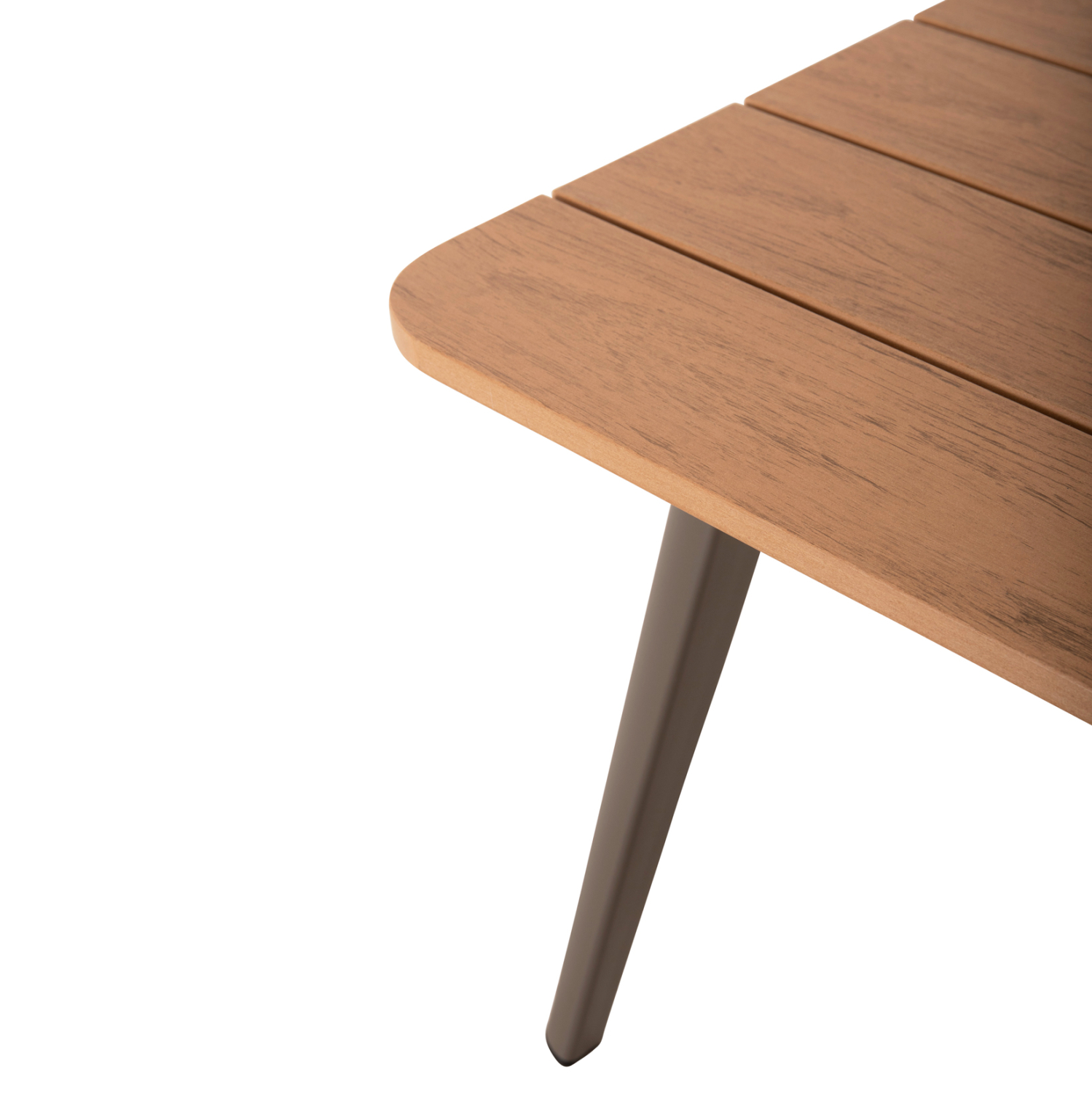 Το polywood της επιφάνειας του τραπεζιού είναι υλικό κατασκευασμένο εξολοκλήρου από HDPE(High-Density PolyEthylene), δηλαδή είδος πλαστικού ιδιαίτερα ανθεκτικό και αδιάβροχο, που έχει υποστεί επεξεργασία για να μοιάζει με ξύλο.