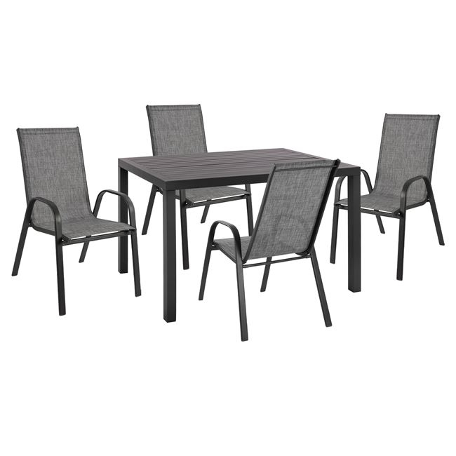 ΣΕΤ 5ΤΜΧ HM10525 ΜΕ ΤΡΑΠΕΖΙ ΑΛΟΥΜΙΝΙΟΥ ΑΝΘΡΑΚΙ 120Χ80Χ75.5Υ & 4 ΠΟΛΥΘΡΟΝΕΣ LEON ΓΚΡΙ
