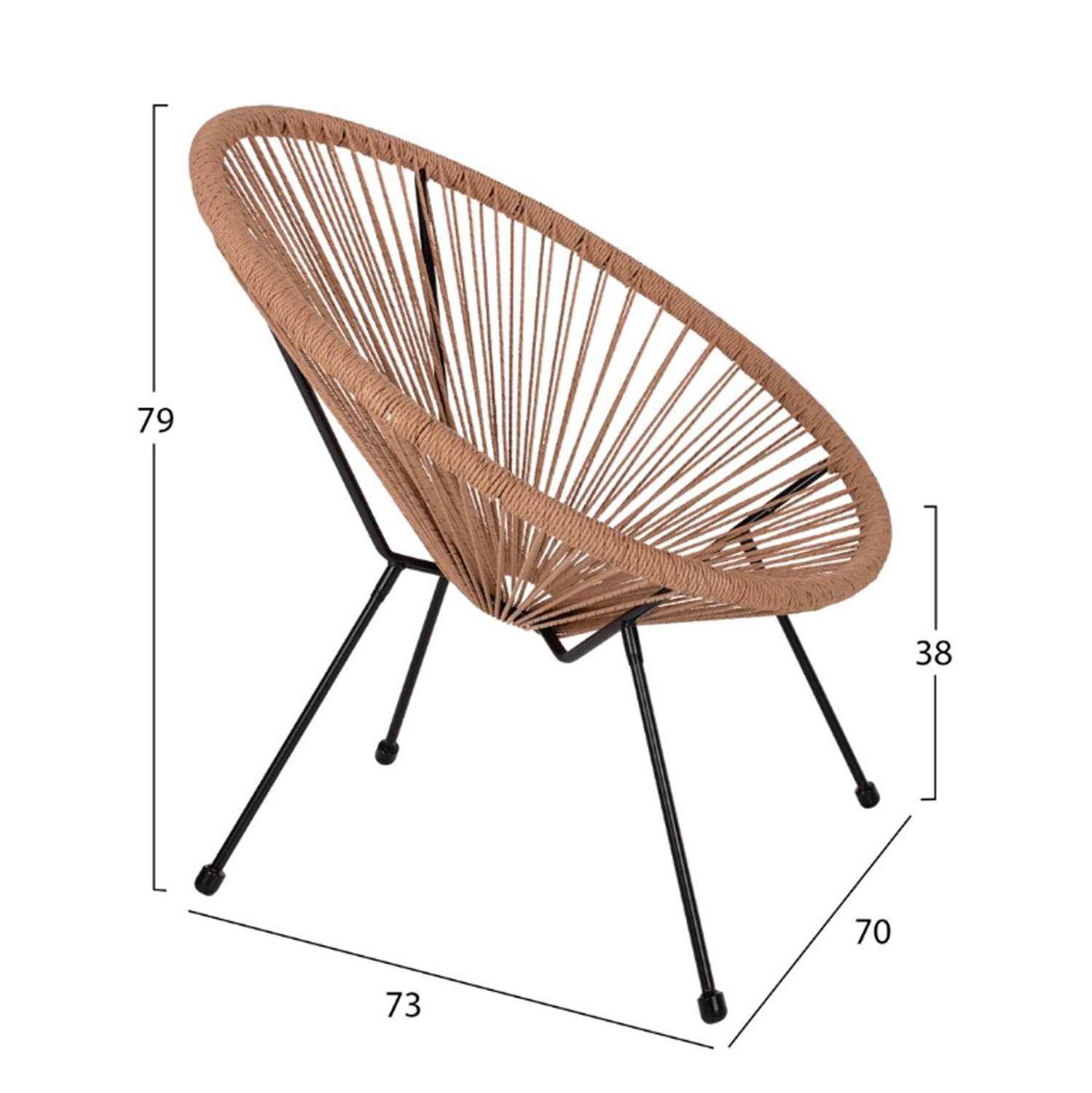 Το ACAPULCO είναι ένα σετ σαλονιού εξωτερικού χώρου σε ΜΠΕΖ και ΜΑΥΡΟ χρώμα, με στρογγυλό τραπεζάκι με γυάλινη επιφάνεια και 2 αναπαυτικές πολυθρόνες τύπου φωλιάς! Η επένδυση σε όλο το σετ είναι από twisted wicker επάνω σε μαύρους μεταλλικούς σκελετούς. Το Wicker δεν είναι υλικό, είναι μέθοδος κατασκευής επίπλων κυρίως για εξωτερικούς χώρους, με βασικό υλικό το συνθετικό Rattan.