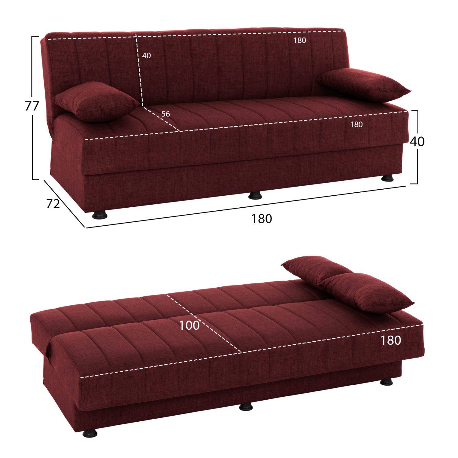 Διαστάσεις καναπέ: 180x72x77Y εκ.