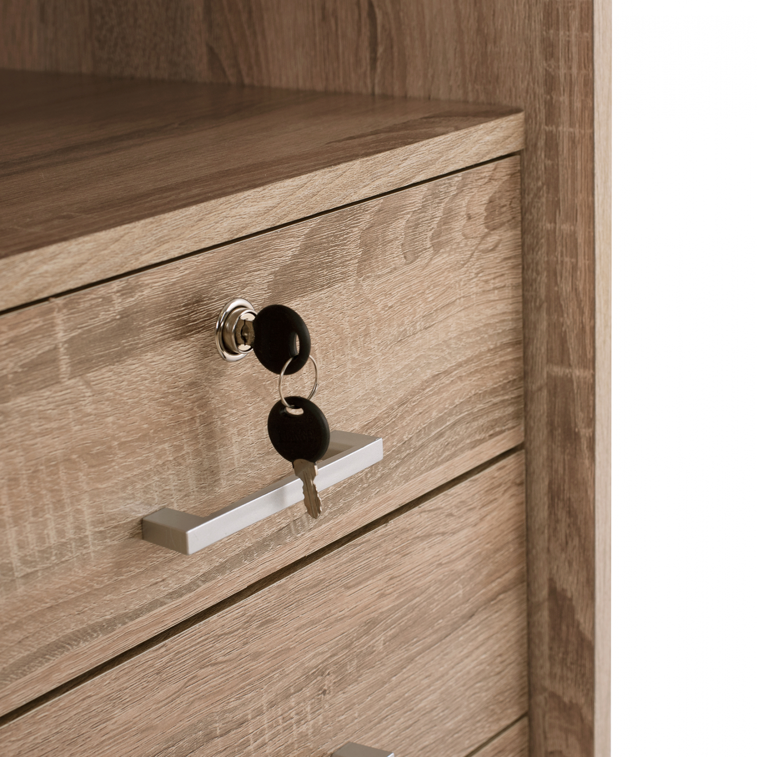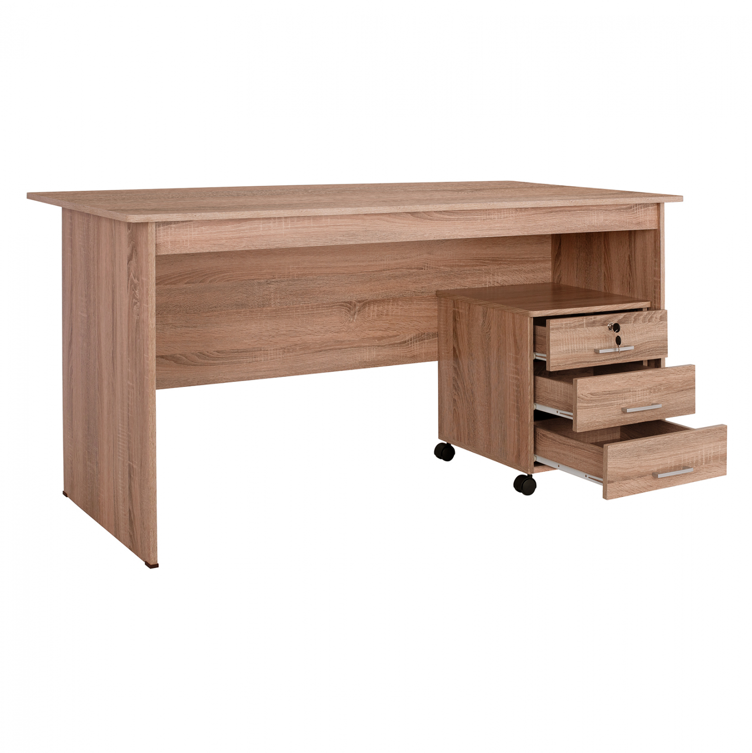 Σετ γραφείου 2 τμχ που αποτελείται από γραφείο μελαμίνης με κομψό και λιτό σχεδιασμό, κατασκευασμένο από ανθεκτική μελαμίνη σε sonama απόχρωση και συρταριέρα γραφείου σε sonama απόχρωση, με κλειδαριά.