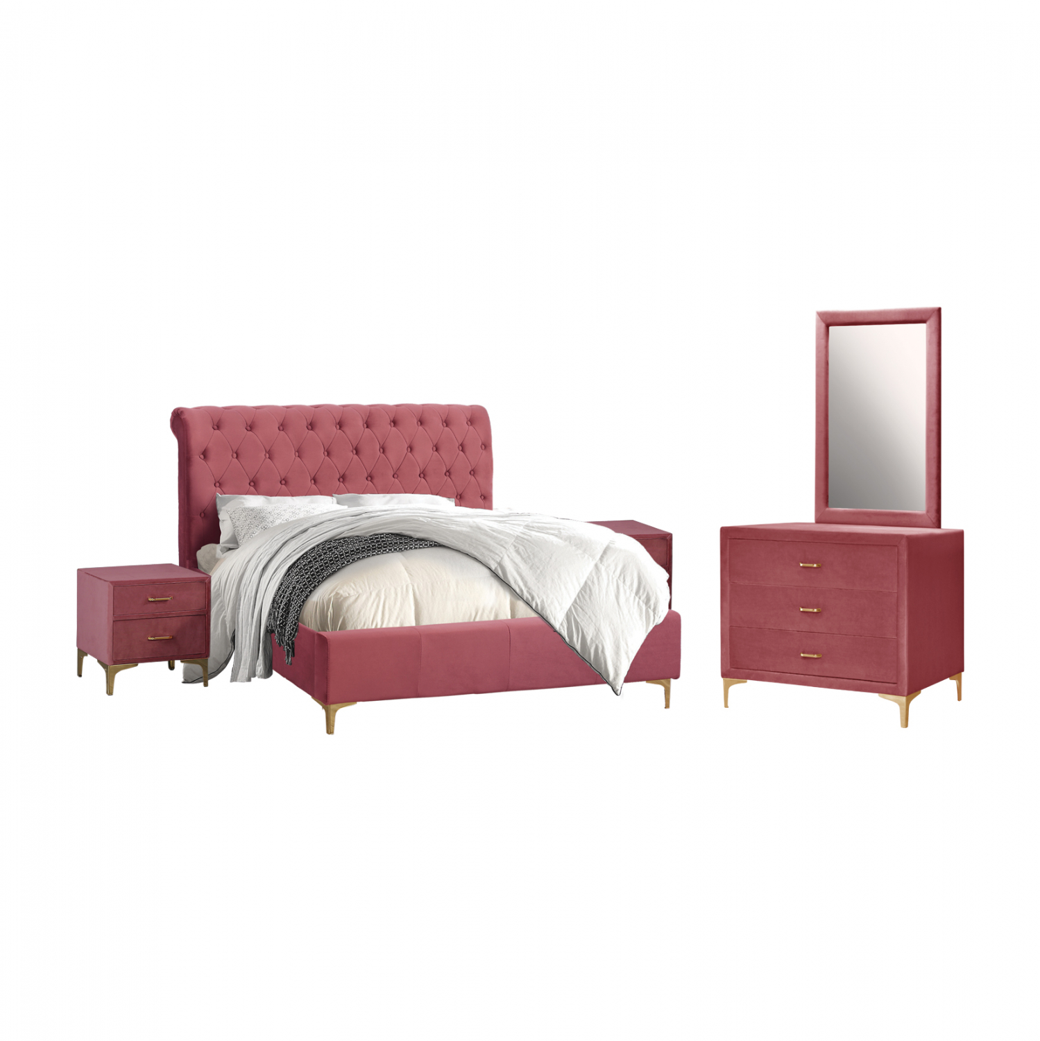 Σετ κρεβατοκάμαρας 4τμχ από βελούδο σε απόχρωση σάπιο μήλο.