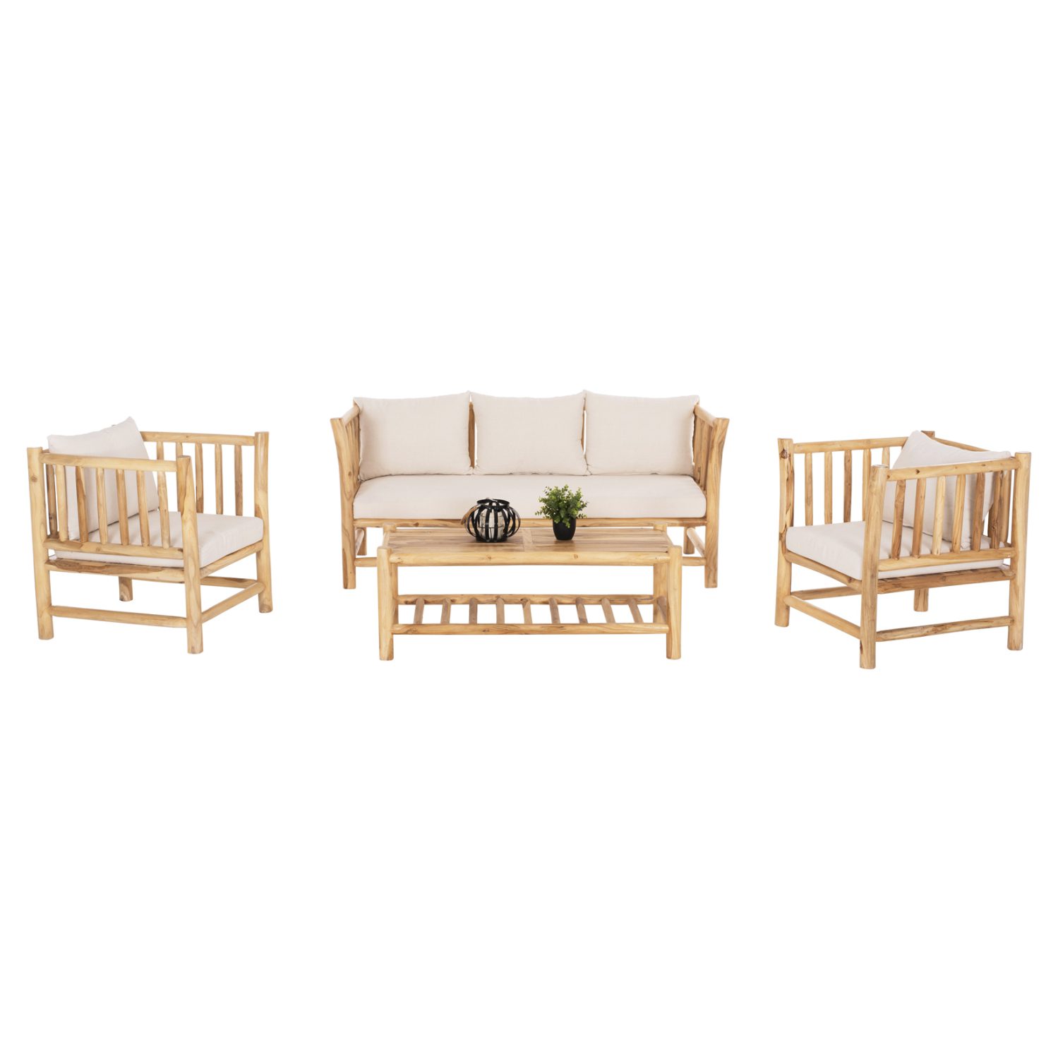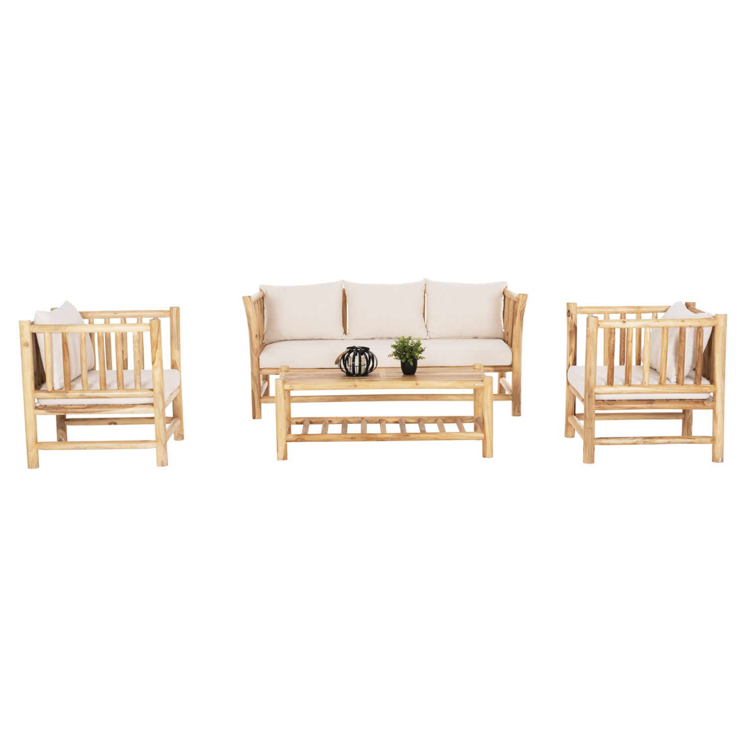 To ΗΜ9340 είναι ένα σετ 4 τεμαχίων που αποτελείται από 1 καναπέ, 2 πολυθρόνες και 1 τραπεζάκι σαλονιού. Όλα τα έπιπλα είναι κατασκευασμένα από ακατέργαστο μασίφ ξύλο στο φυσικό του χρώμα. Οι πολυθρόνες έχουν ψηλά μπράτσα και βαθύ κάθισμα, όπως και ο καναπές, ενώ το τραπεζάκι διαθέτει κι ένα επιπλέον ράφι κάτω από την επιφάνεια του. Όλο το σετ αποτελεί χαρακτηριστικό παράδειγμα ρουστίκ διακόσμησης και τραβάει τα βλέμματα οπουδήποτε κι αν τοποθετηθεί.