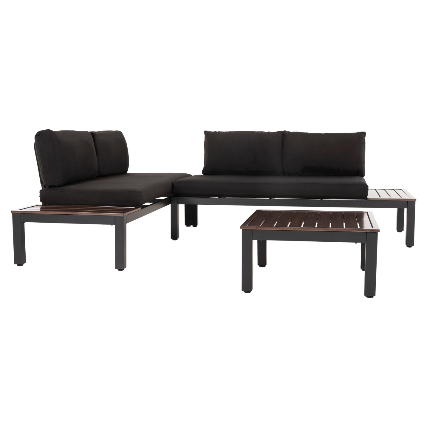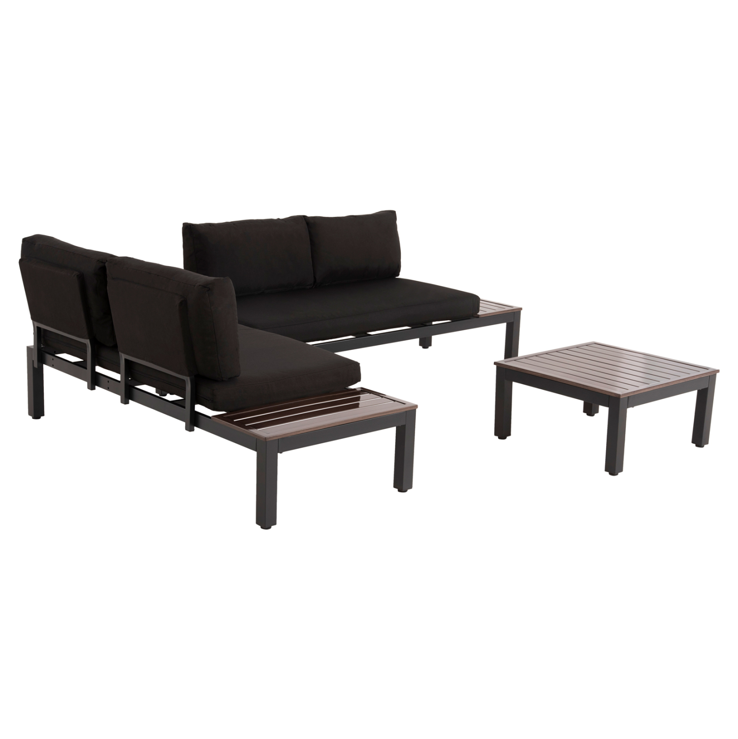 Το DEX είναι ένα όμορφο σετ σαλονιού εξωτερικού χώρου 3 τεμαχίων. Αποτελείται από 2 καναπέδες και ένα τραπεζάκι. Όλα τα μέρη του σετ είναι ίδιας αισθητικής και κατασκευής με σκελετό αλουμινίου με ψηλά πόδια, σε ΑΝΘΡΑΚΙ και ΚΑΦΕ χρώμα. Τα μαξιλάρια είναι σε ΜΑΥΡΟ χρώμα και διαθέτουν φερμουάρ για να αφαιρούνται εύκολα και να πλένονται και στηρίζονται στον σκελετό με θήκες που μπαίνουν στον σκελετό της πλάτης. Αυτό, όμως, που κάνει το σετ να ξεχωρίζει από οτιδήποτε άλλο, είναι η πολυμορφικότητά του. Μπορείτε να δημιουργήσετε είτε δεξιά γωνία, είτε αριστερή, αλλά εάν θέλετε μπορείτε να τα τοποθετήσετε και κατά μήκος για να φτιάξετε έναν μεγάλο καναπέ. Επιπλέον, όλο το σετ είναι ελαφρύ σε βάρος με αποτέλεσμα η μετακίνηση αλλά και η μεταφορά του (αν χρειαστεί) να γίνεται εύκολα.