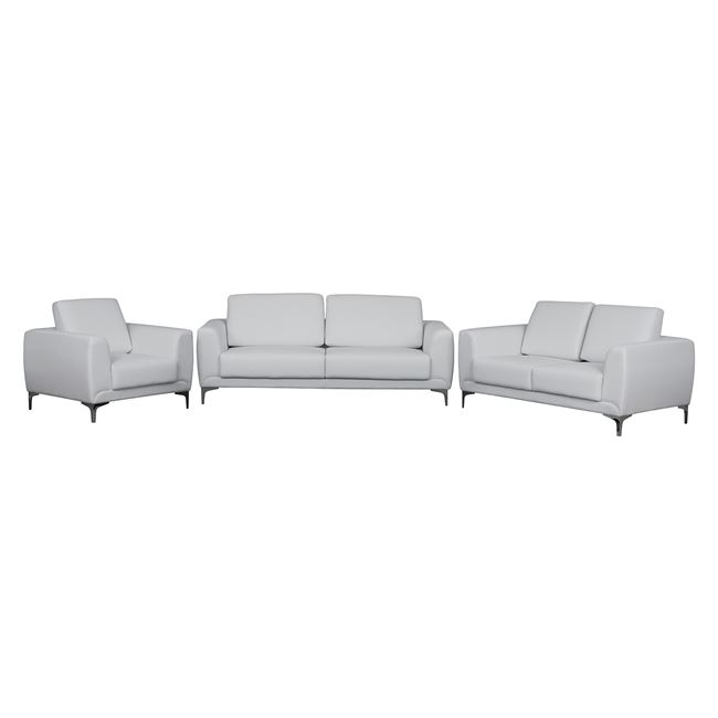 Σετ σαλόνι 3 τεμαχίων KENZIE από λευκό τεχνόδερμα. Το σετ αποτελείται από: