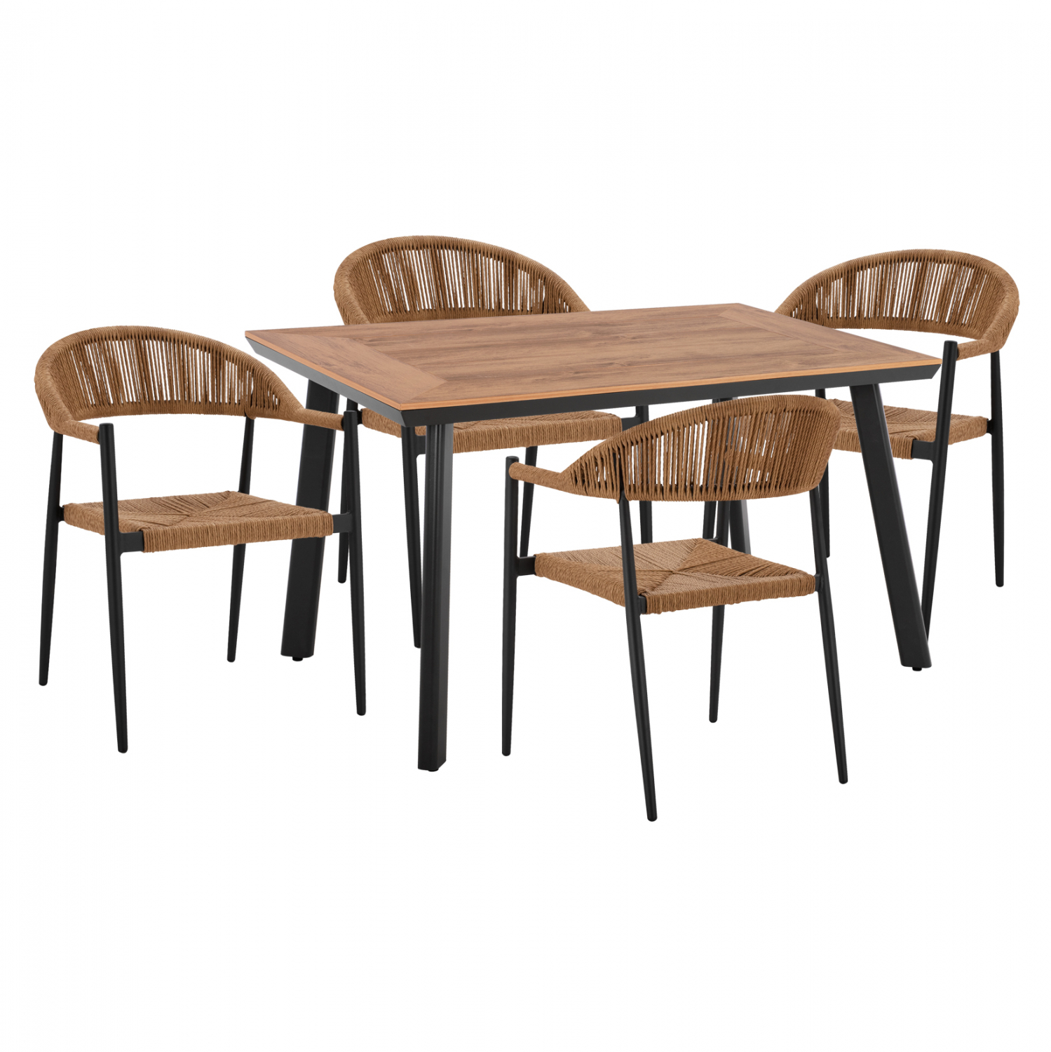 Ένα τραπέζι τραπεζαρίας από σκελετό αλουμινίου σε ανθρακί απόχρωση, και επιφάνεια Polywood φυσικής απόχρωσης.