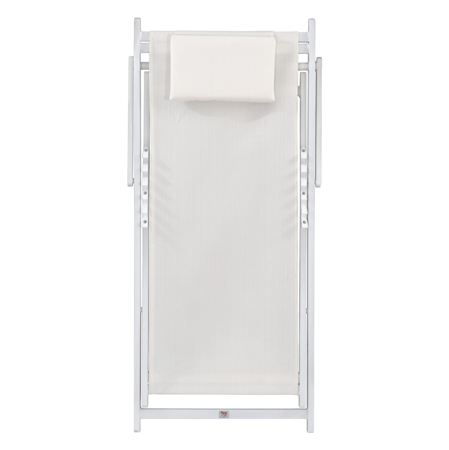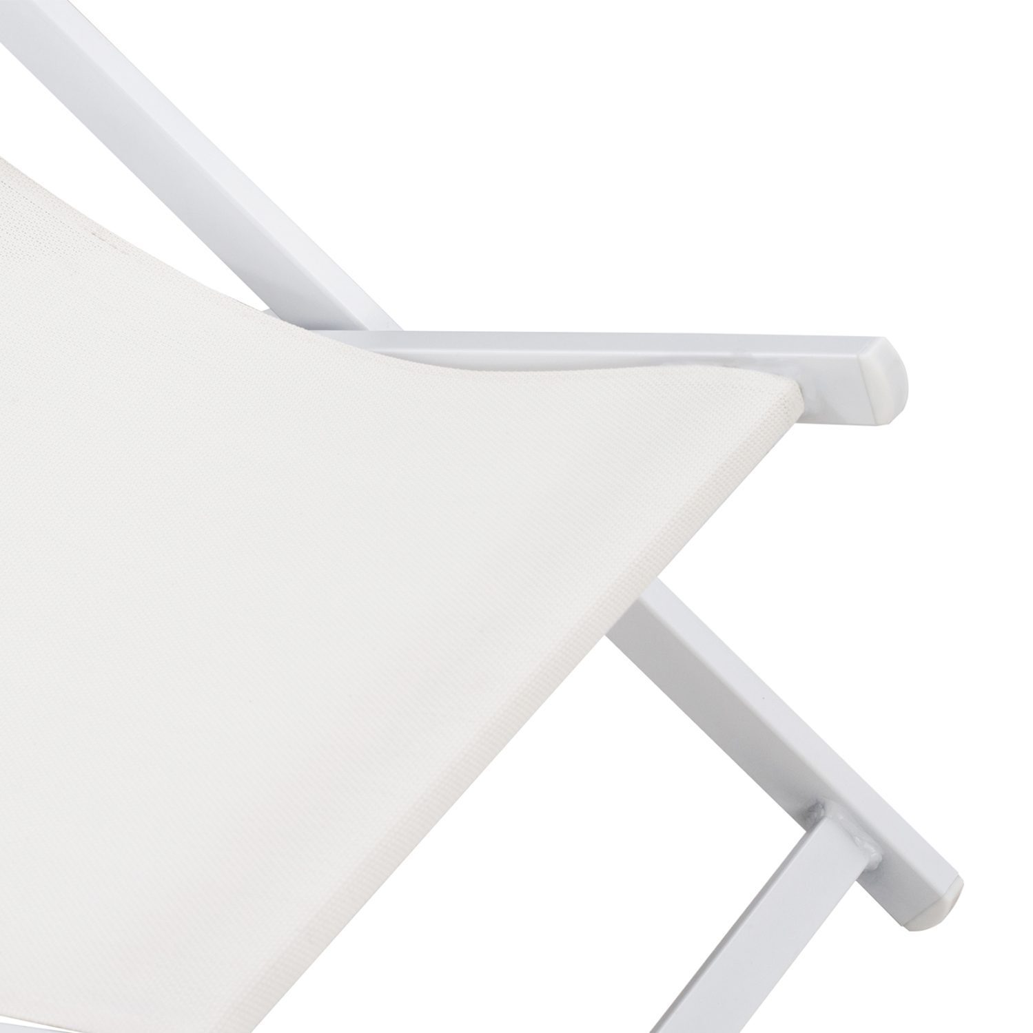 Η συγκεκριμένη, έχει κλασσικό σχεδιασμό με πλάτη που στηρίζει το σώμα και με εξτρά μαξιλάρι για το κεφάλι και σκαλιέρα 5 θέσεων. Το χρώμα της είναι ΛΕΥΚΟ τόσο στον σκελετό, όσο και στο textilene.