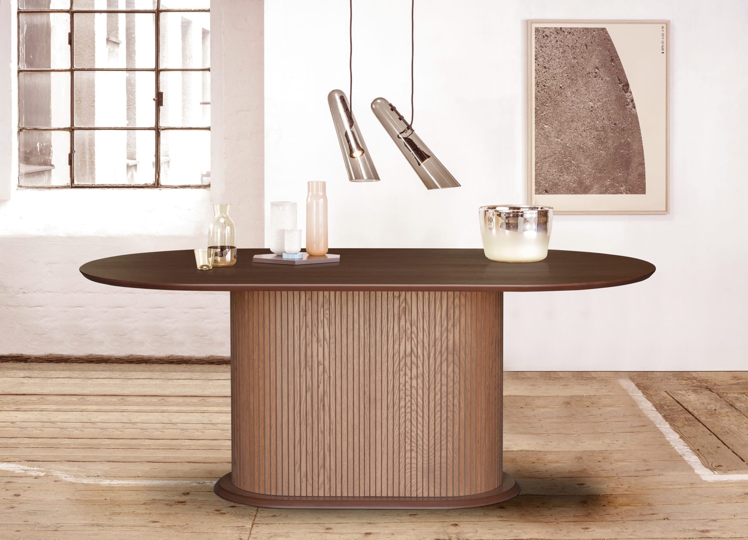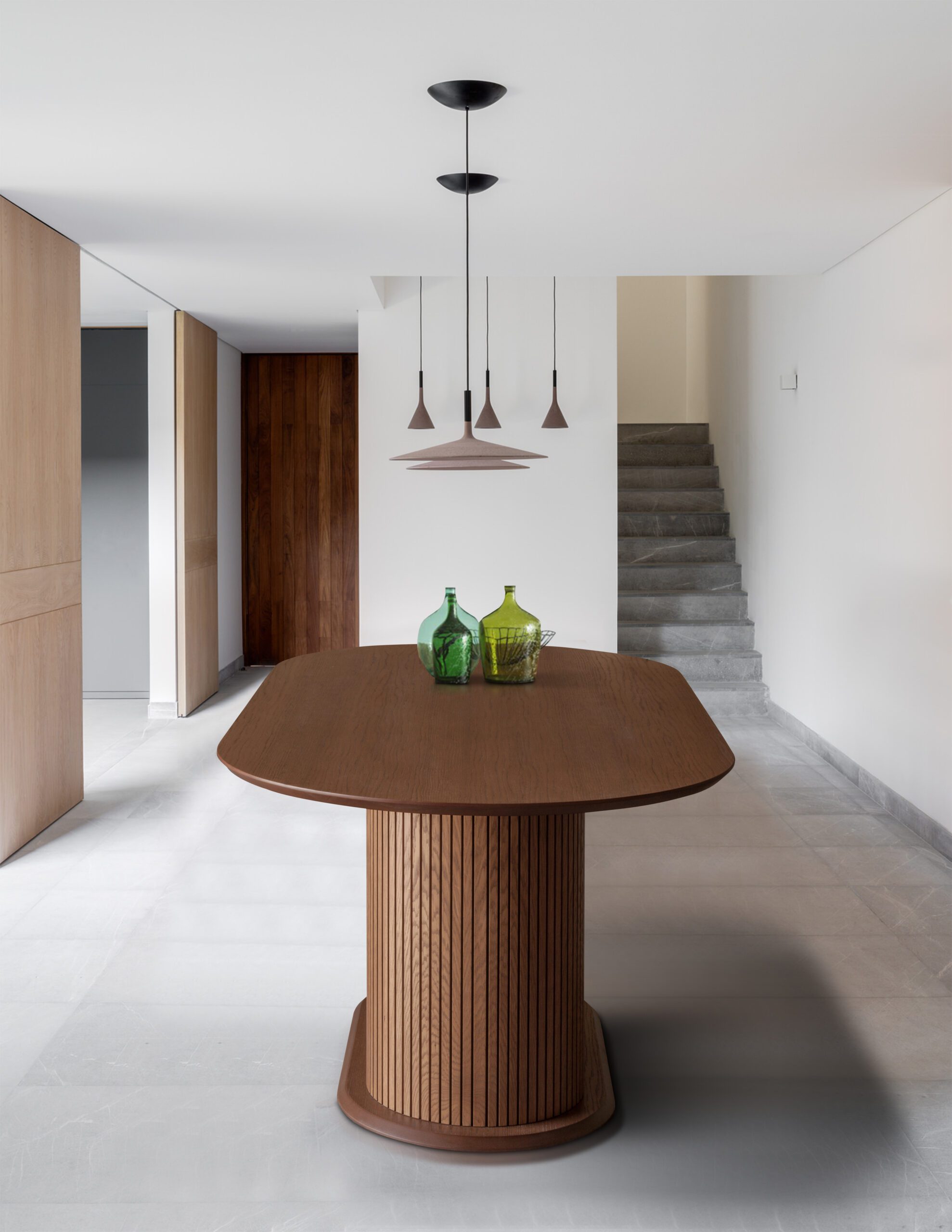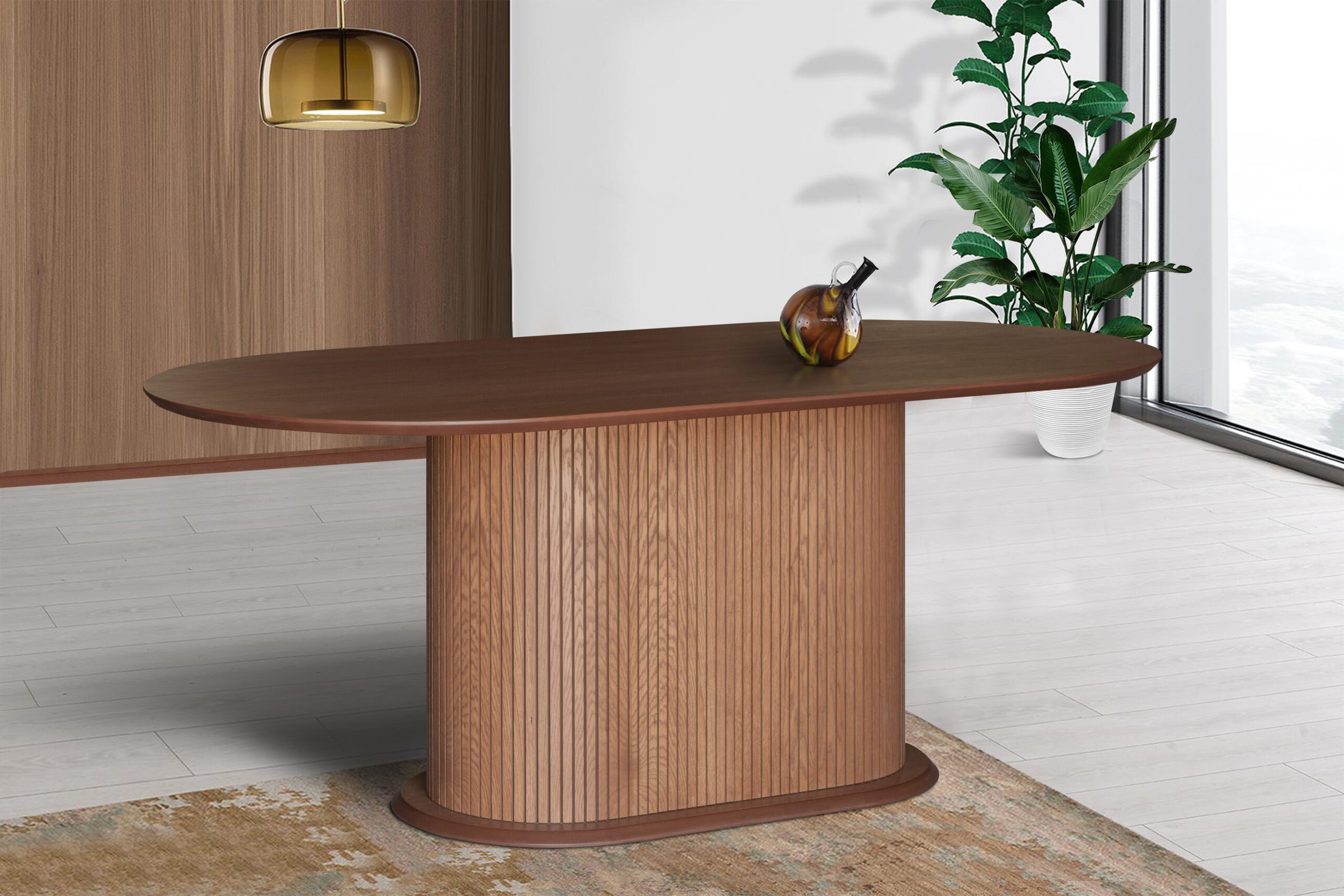 Τραπεζαρία από μασίφ ξύλο δρυς με δυνατότητα επιλογής απόχρωσης. Σε όλα τα τραπέζια προσαρμόζονται διαστάσεις, χρώμα ξύλου, χρώμα μετάλλου όπου υπάρχει, καθώς και σχέδιο κεραμικού στην επιφάνεια, για μοναδική αισθητική και λειτουργικότητα.