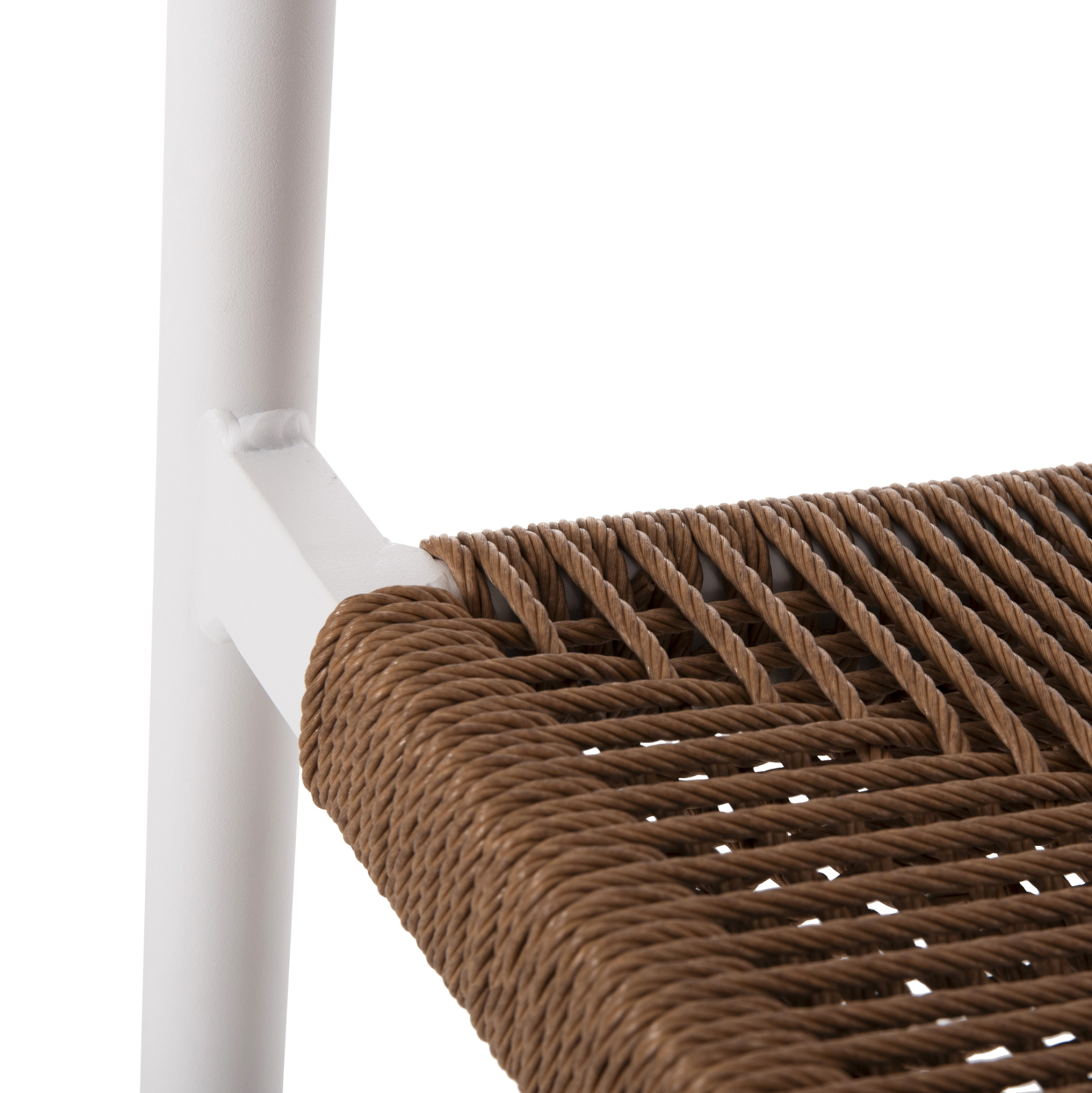 Η πλάτη και το κάθισμα του σκαμπό είναι επενδυμένη με πολυεστερικό (συνθετικό) RATTAN. Στα περισσότερα έπιπλα κήπου και γενικά σε έπιπλα για εξωτερικούς χώρους χρησιμοποιείται συνθετικό υλικό από PVC, δηλαδή τεχνητές ίνες υψηλής ποιότητας. Αυτό δίνει στην κατασκευή εξαιρετική αντοχή και ανθεκτικότητα σε ακραίες συνθήκες ζέστης ή κρύου.