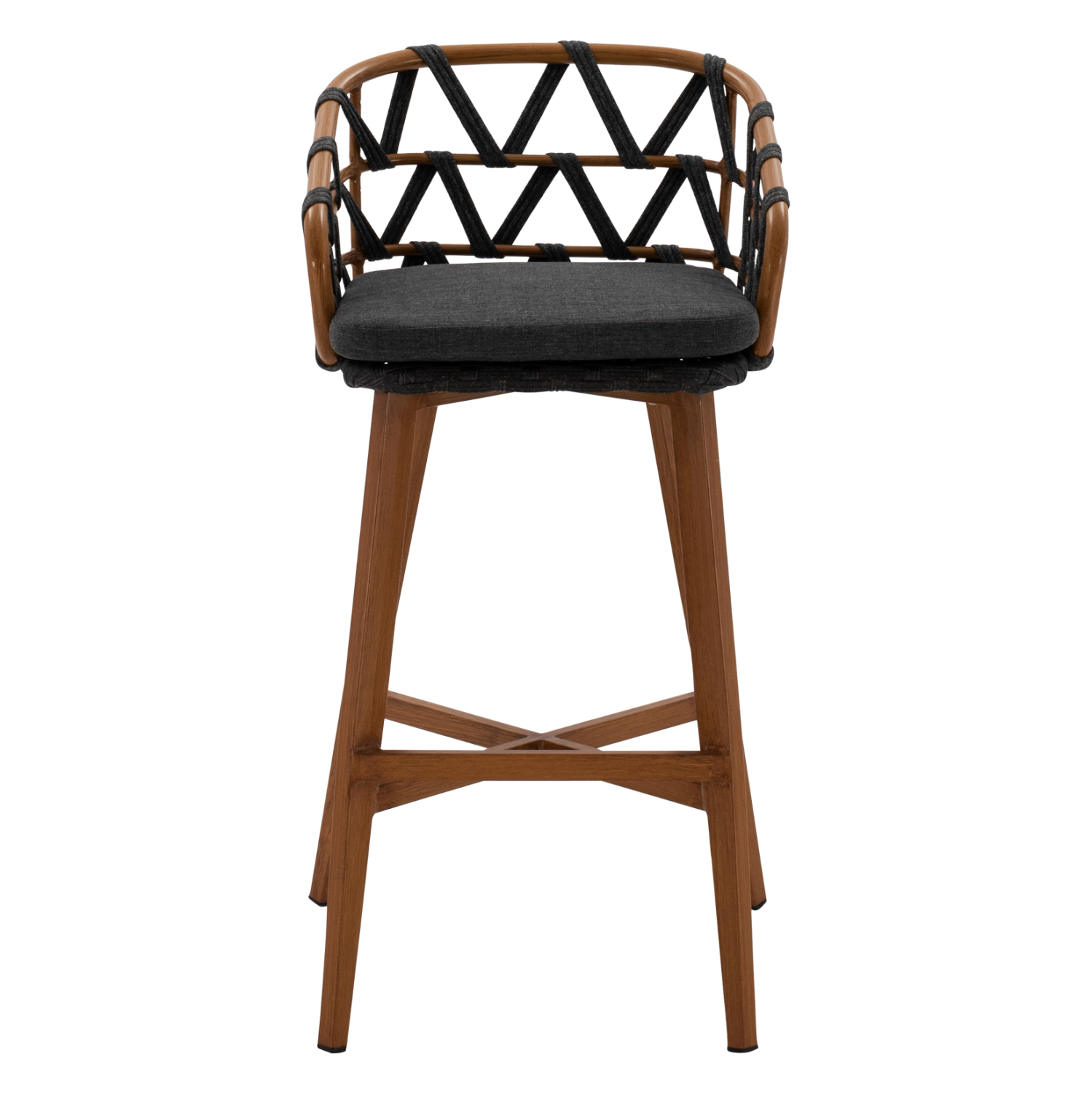 Η πλάτη του σκαμπό είναι επενδυμένη με σχοινί OLEFIN. Η ίνα olefin είναι μια συνθετική ίνα κατασκευασμένη από διάφορα πλαστικά υλικά. Το υλικό που είναι κατασκευασμένο από αυτή την ίνα είναι ισχυρό, δεν ξεβάφει, και είναι ανθεκτικό στην μούχλα, την τριβή και το ηλιακό φως, επειδή διαθέτει προστασία από την υπεριώδη ακτινοβολία που προστίθεται στη διαδικασία κατασκευής. Τα πιο σημαντικά χαρακτηριστικά, ωστόσο, είναι ότι είναι αδιάβροχο και ανθεκτικό στους λεκέδες (αλέκιαστο).