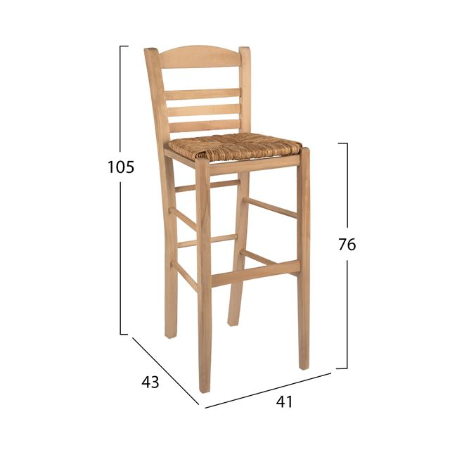 Σκαμπό καφενείου επιλοχία με ψάθα από μασίφ ξύλο φουρνιστής οξιάς άβαφο.