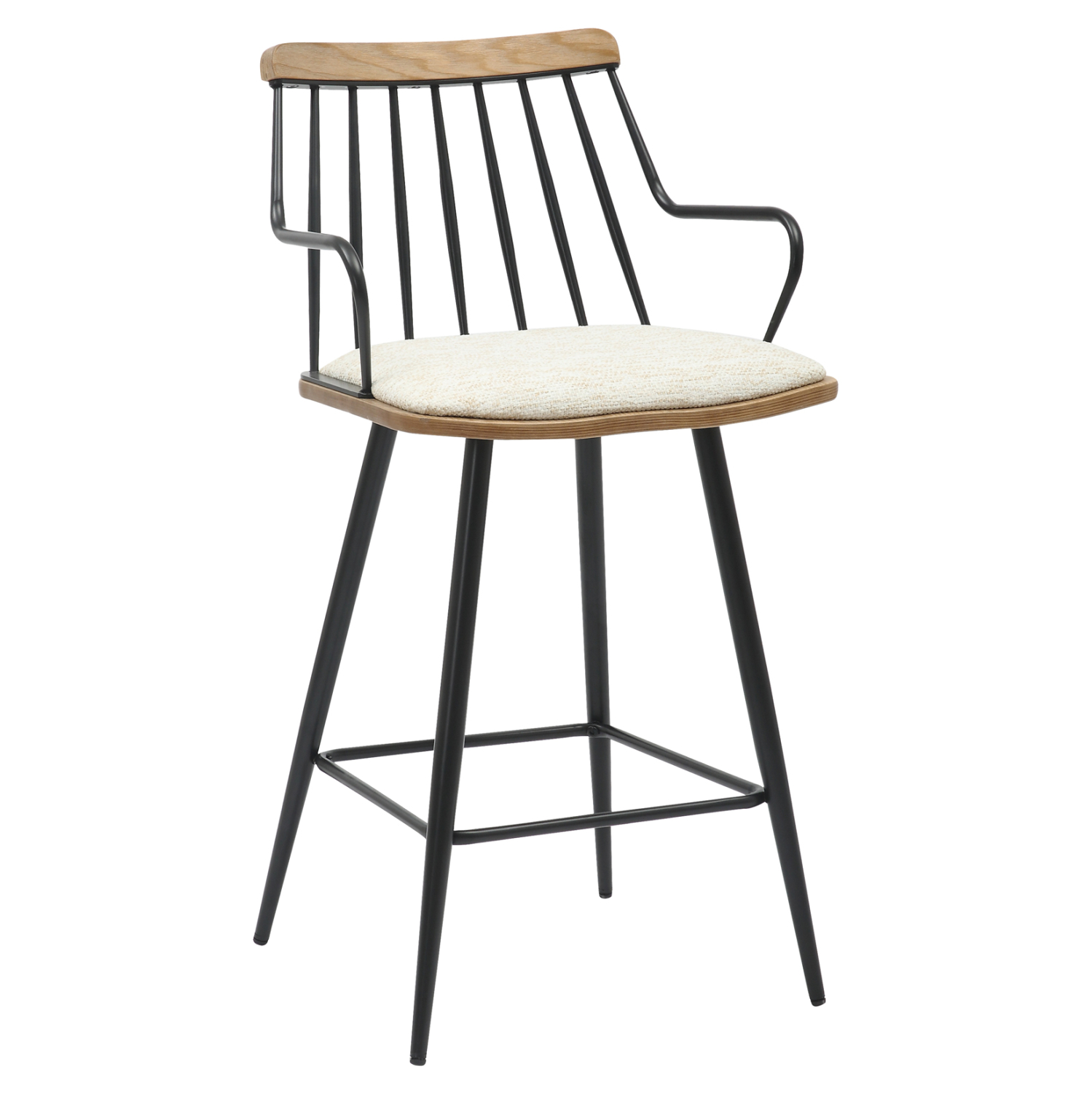 Το JUDI είναι ένα σκαμπό μεσαίου ύψους με πλάτη και μπράτσα για μπαρ. Τα πόδια είναι μεταλλικά σε ΜΑΥΡΗ απόχρωση όπως και το τετράγωνο υποπόδιο. Το κάθισμα είναι επενδυμένο με ΕΚΡΟΥ ύφασμα και διακρίνεται από την άνεση που προσφέρει. Ωστόσο, αυτό που ξεχωρίζει είναι η πλάτη που αποτελείται από μεταλλικές ράβδους σε ΜΑΥΡΟ χρώμα όπως επίσης και τα μπράτσα, που καθιστούν αυτό το σκαμπό ιδιαίτερα πρακτικό.