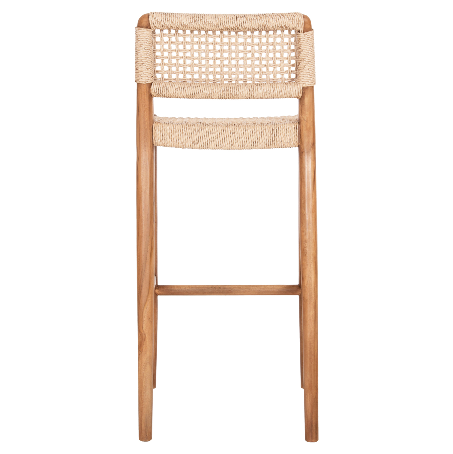 Το σκαμπό μπαρ ROSCO με το ψηλό κάθισμα διαθέτει σκελετό από ποιοτικό ξύλο σε ΦΥΣΙΚΟ χρώμα, ενώ τόσο η κοντή πλάτη όσο και το φαρδύ κάθισμα αποτελούνται από αριστοτεχνικά πλεγμένο VIRO σχοινί σε ΜΠΕΖ χρώμα. Οι σχεδιαστικές γραμμές είναι κομψές και με γνώμονα την άνεση του χρήστη, με χαρακτηριστικό παράδειγμα την ύπαρξη των συνδέσεων των ποδιών του σκαμπό, που χρησιμεύουν και ως υποπόδια.