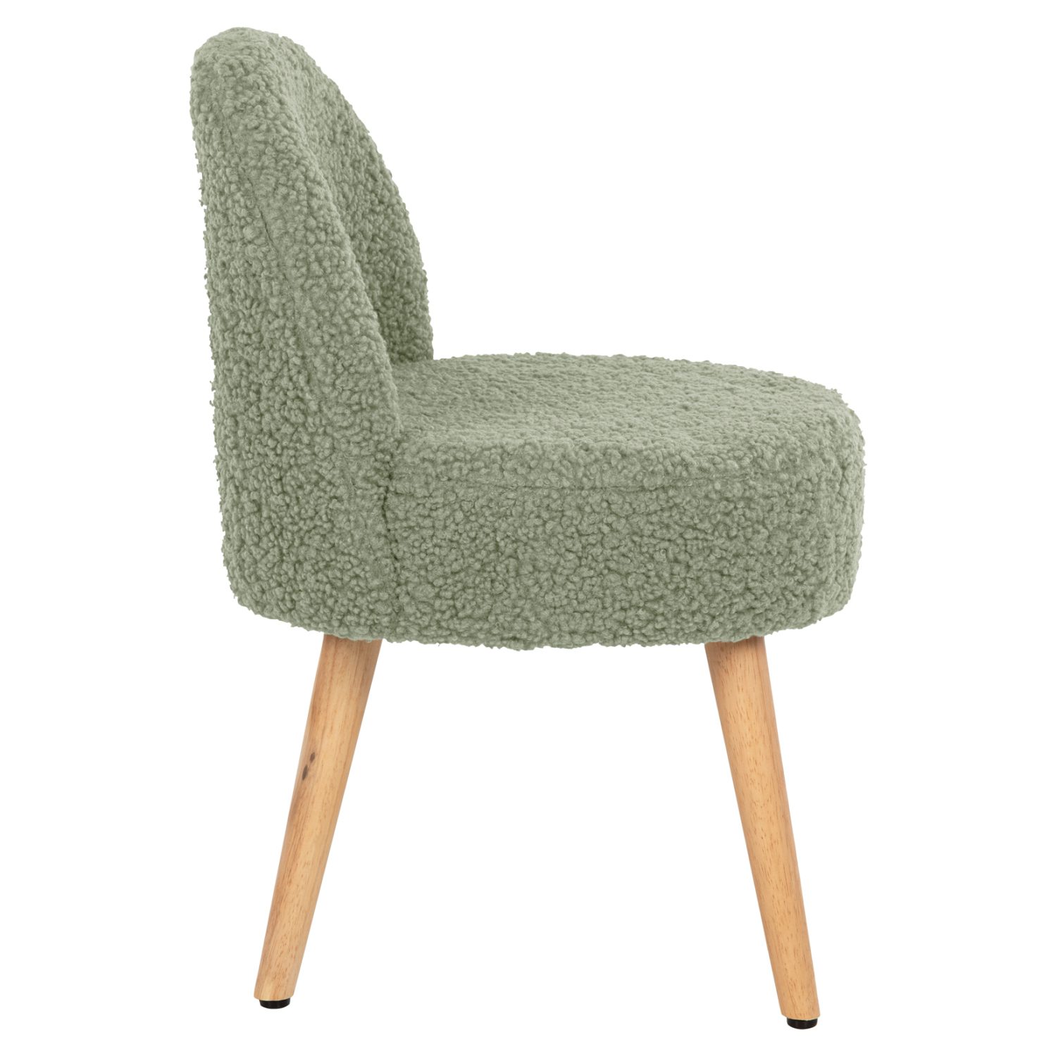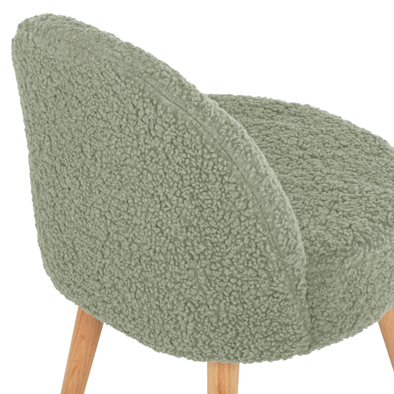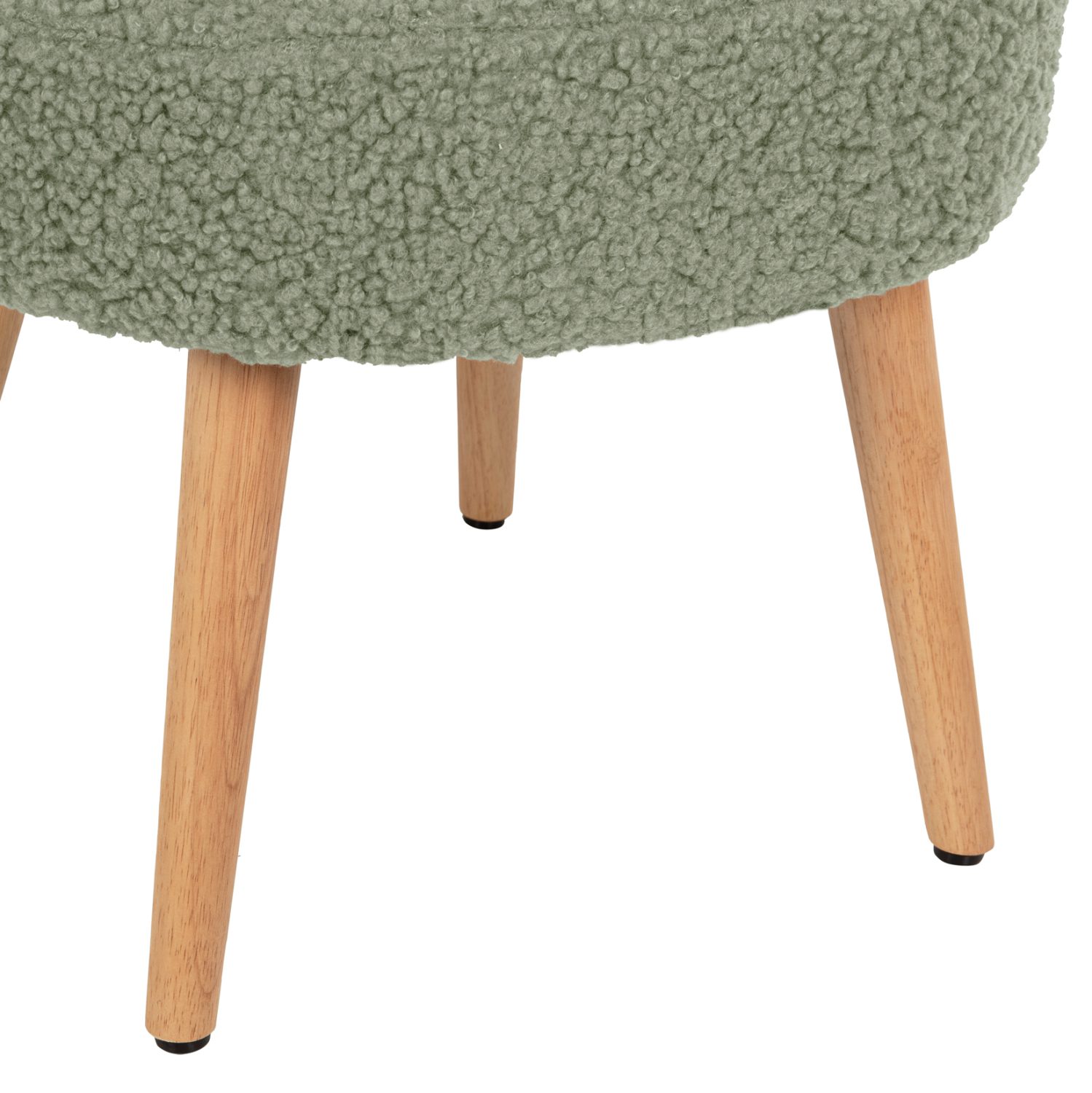Σκαμπό με πολύ χαμηλή πλάτη YASMINE με επένδυση από ζεστό μπουκλέ ύφασμα σε ΦΥΣΤΙΚΙ απόχρωση, με ξύλινα πόδια σε φυσική απόχρωση.