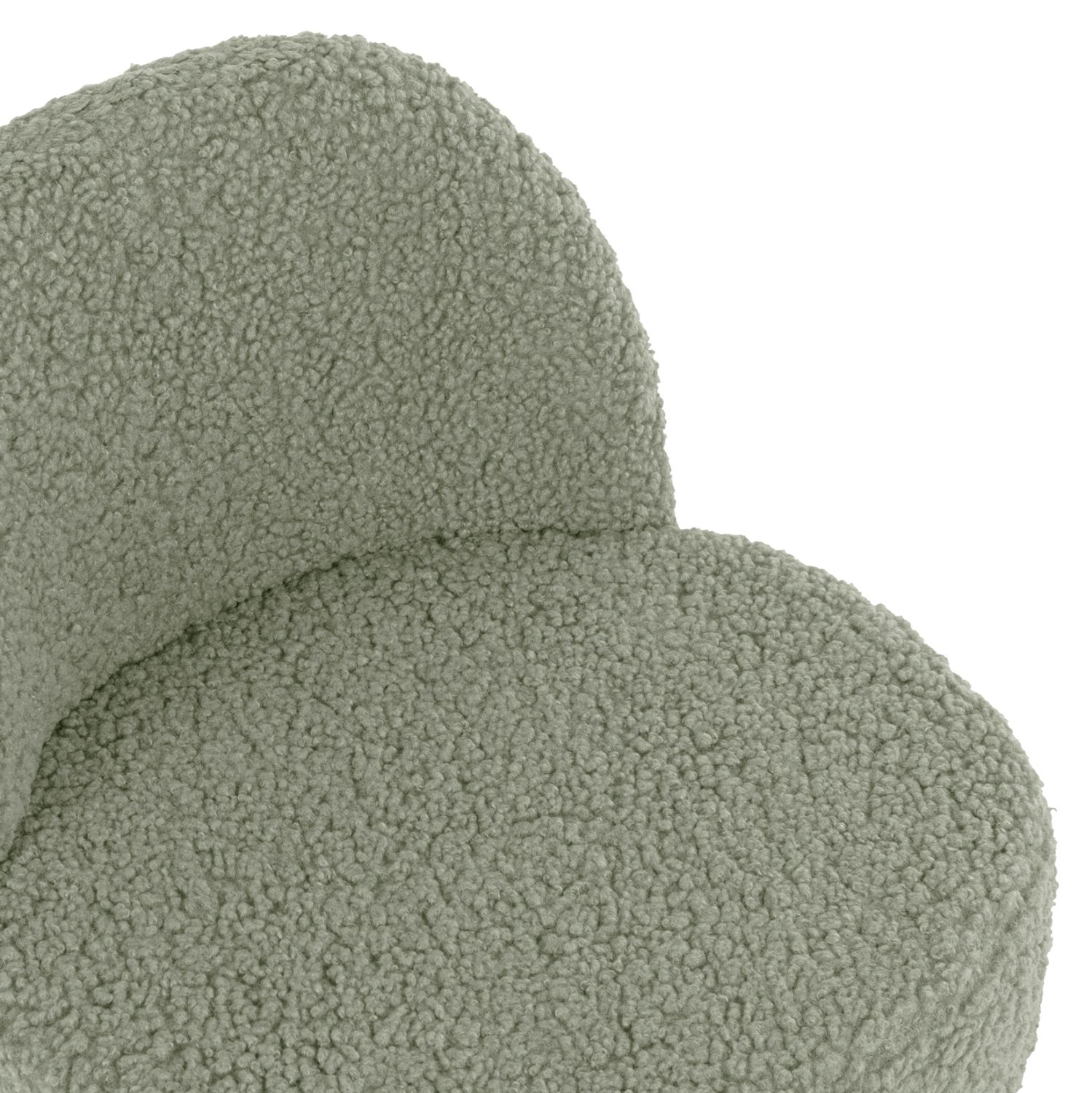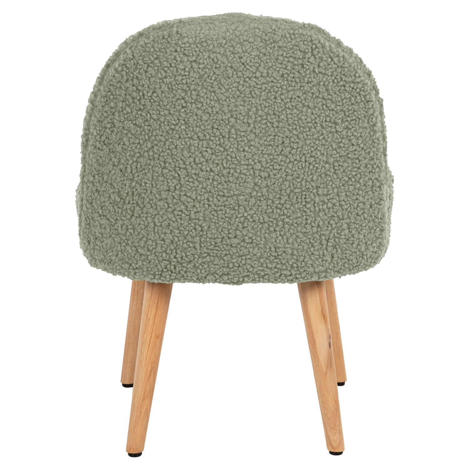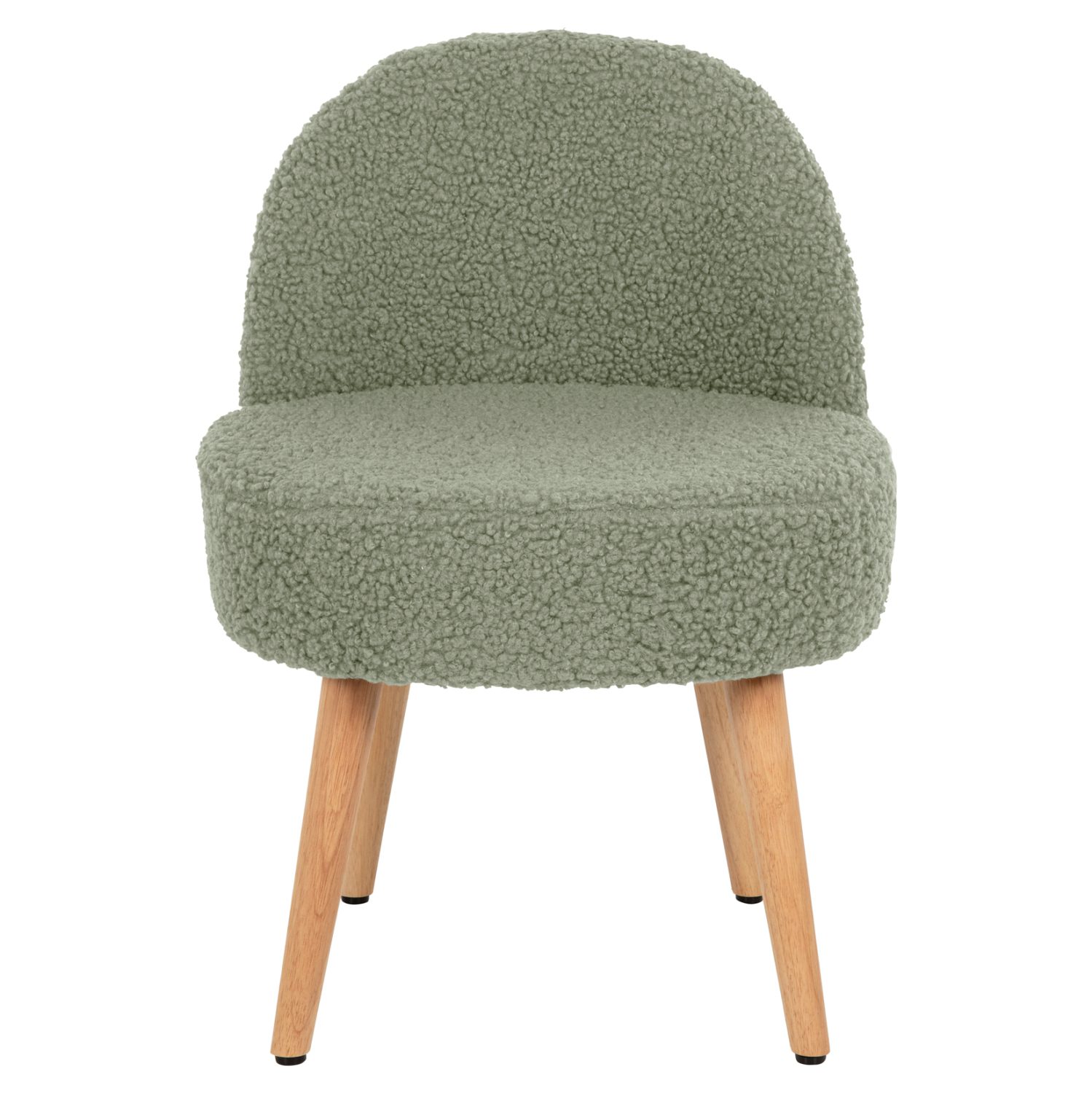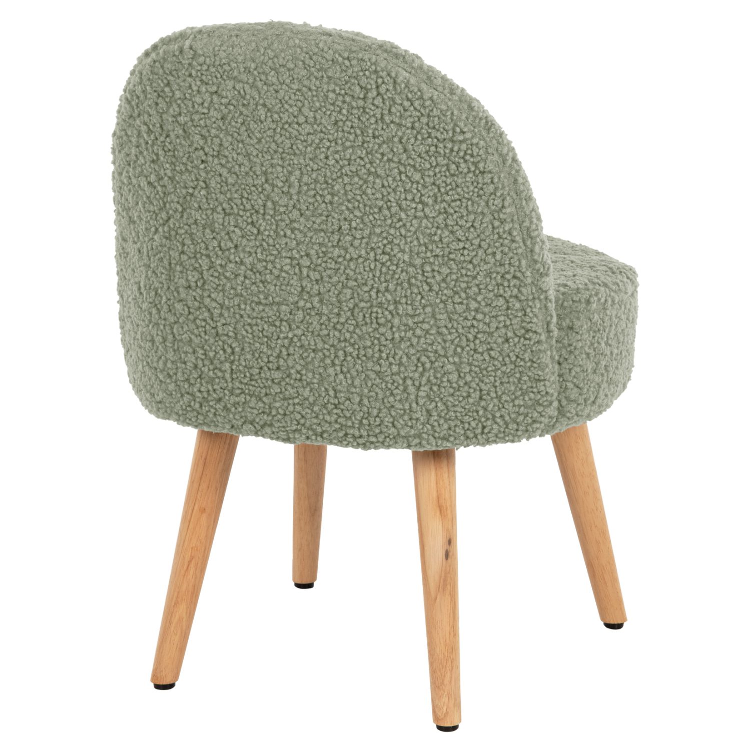 Σκαμπό με πολύ χαμηλή πλάτη YASMINE με επένδυση από ζεστό μπουκλέ ύφασμα σε ΦΥΣΤΙΚΙ απόχρωση, με ξύλινα πόδια σε φυσική απόχρωση.