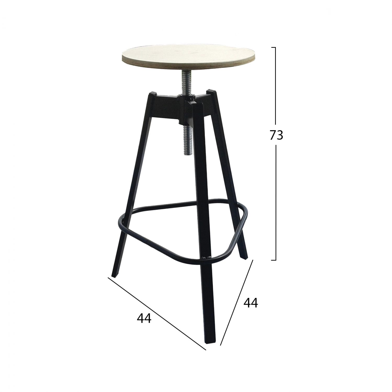 Σκαμπώ TS385 με βίδα σε μαύρη απόχρωση με ηλεκτροστατική βαφή και κάθισμα σε φυσική απόχρωση.