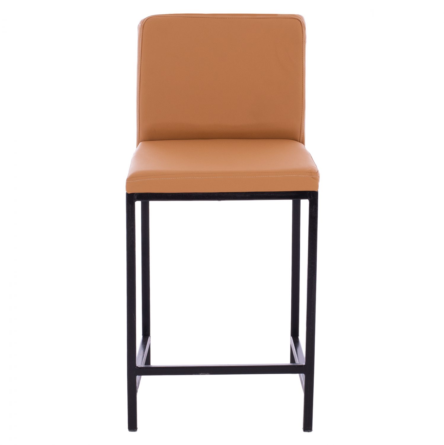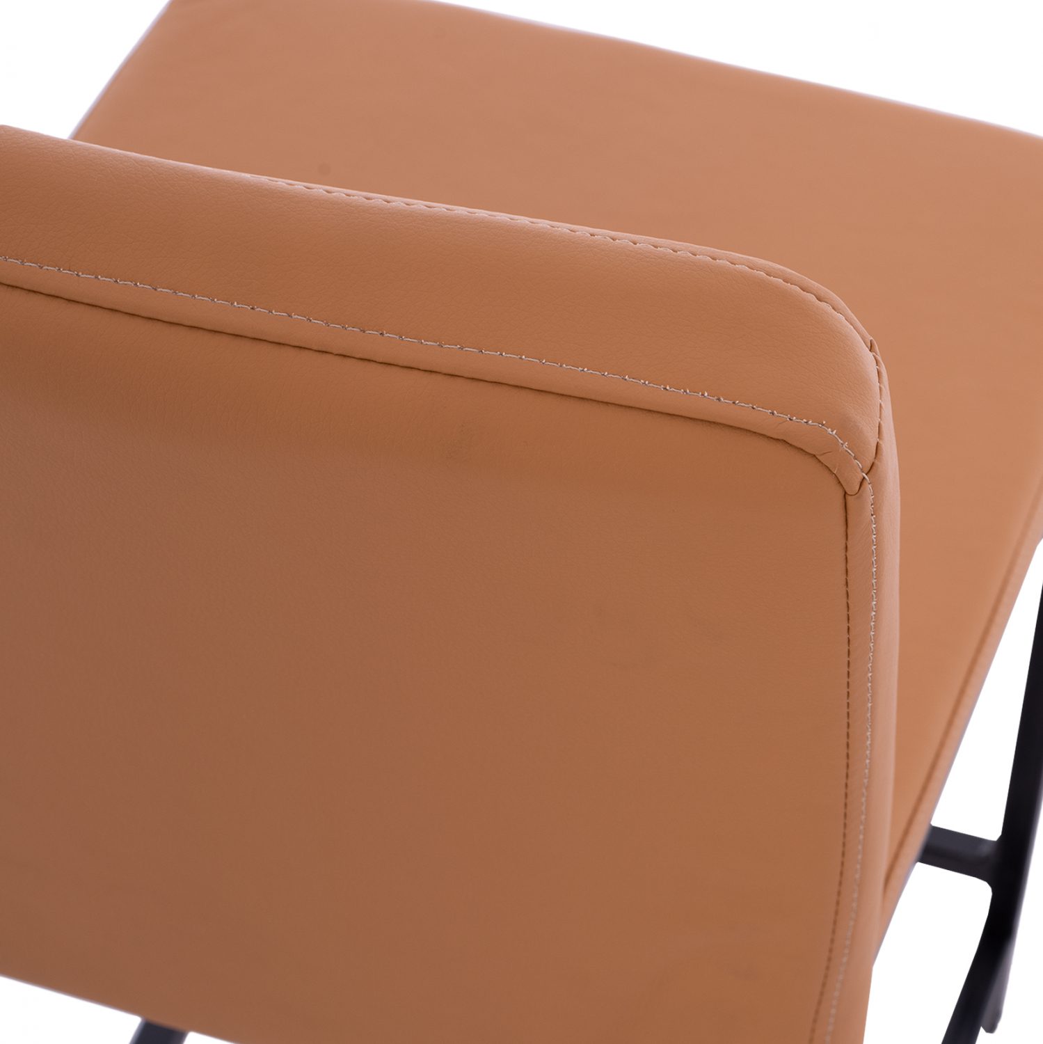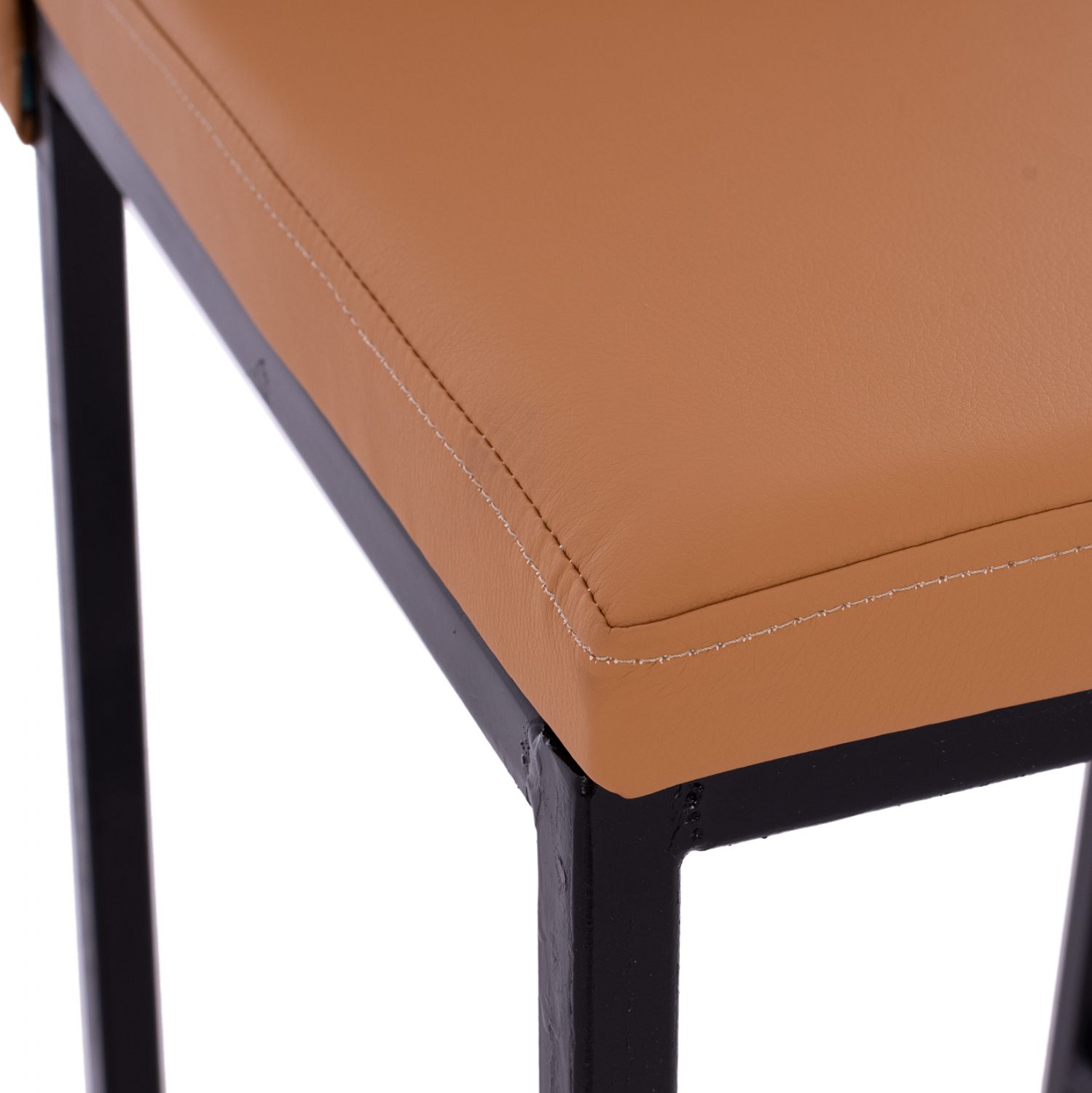 Custom κατασκευή σκαμπό, από δερματίνη σε ταμπά απόχρωση, με σκελετό σε μαύρο χρώμα.