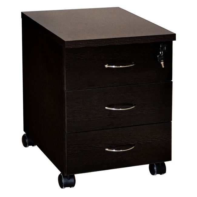 Τροχήλατη συρταριέρα γραφείου για επαγγελματική χρήση σε χρώμα βέγγε, με κλειδαριά, μοντέρνα, σχεδιασμένη για να αποθηκεύεις έντυπα και τα καθημερινά μικροαντικείμενα του γραφείου σου. Κατασκευασμένη από ανθεκτική μελαμίνη.