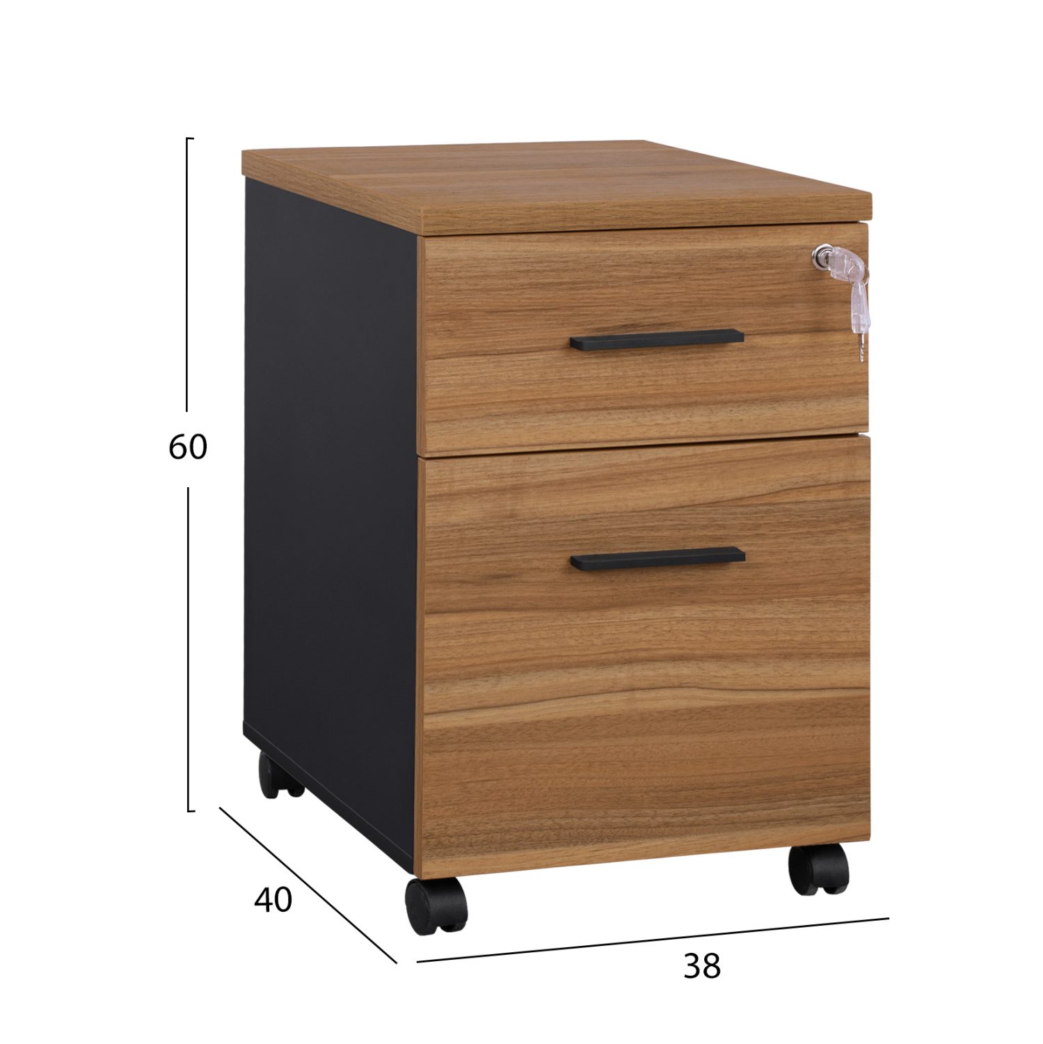 Διαθέτει δύο συρτάρια τα οποία κλειδώνουν όλα.
