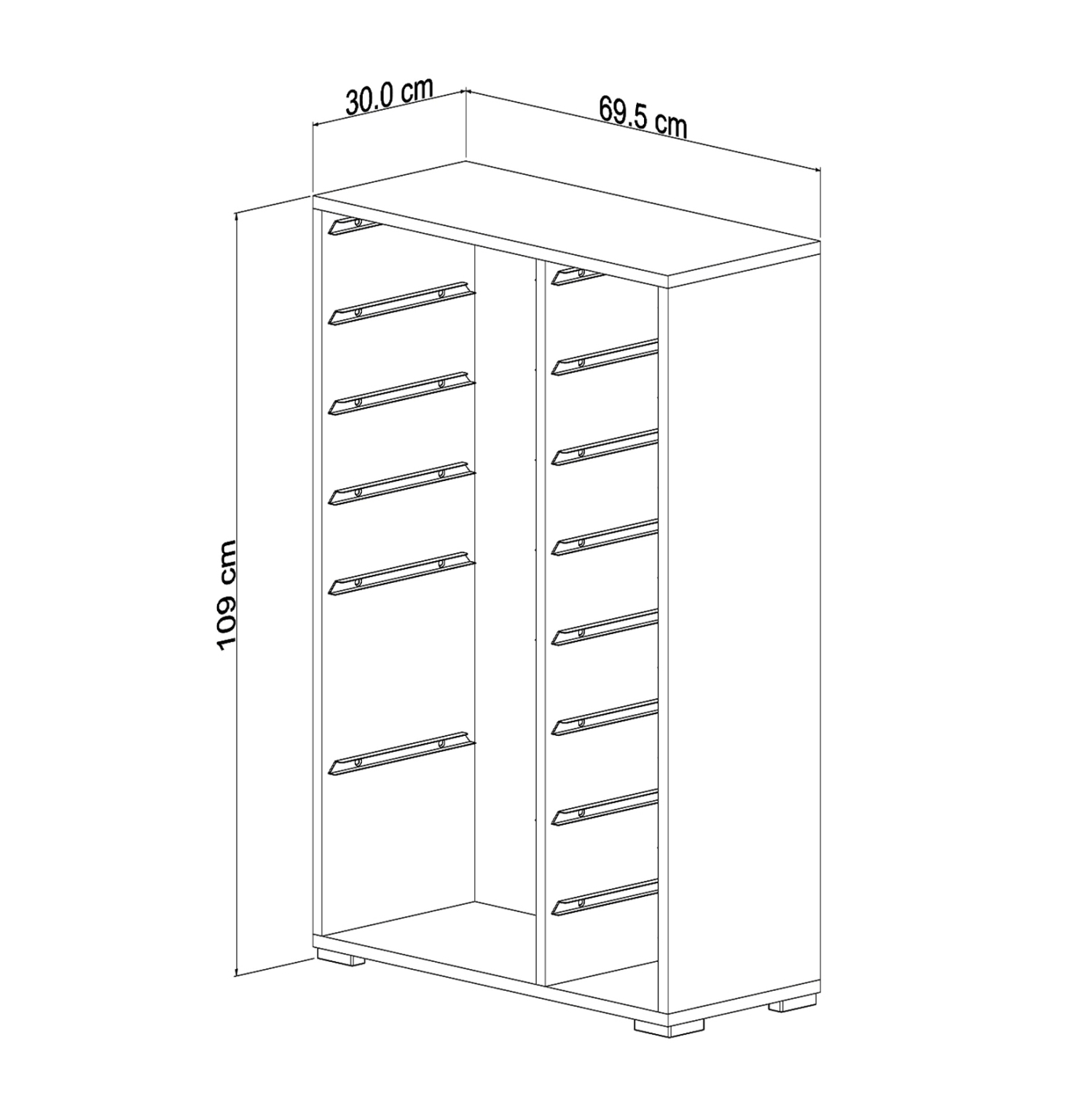 Η SANI είναι μια συρταριέρα με πλαίσιο από μελαμίνη σε χρώμα ΛΕΥΚΟ, με 14 ΛΕΥΚΑ συρτάρια από πολυαιθυλένιο (πλαστικό) σε δύο στήλες και σε διαφορετικά μεγέθη. Ιδανική συρταριέρα για την καλύτερη οργάνωση του παιδικού δωματίου.