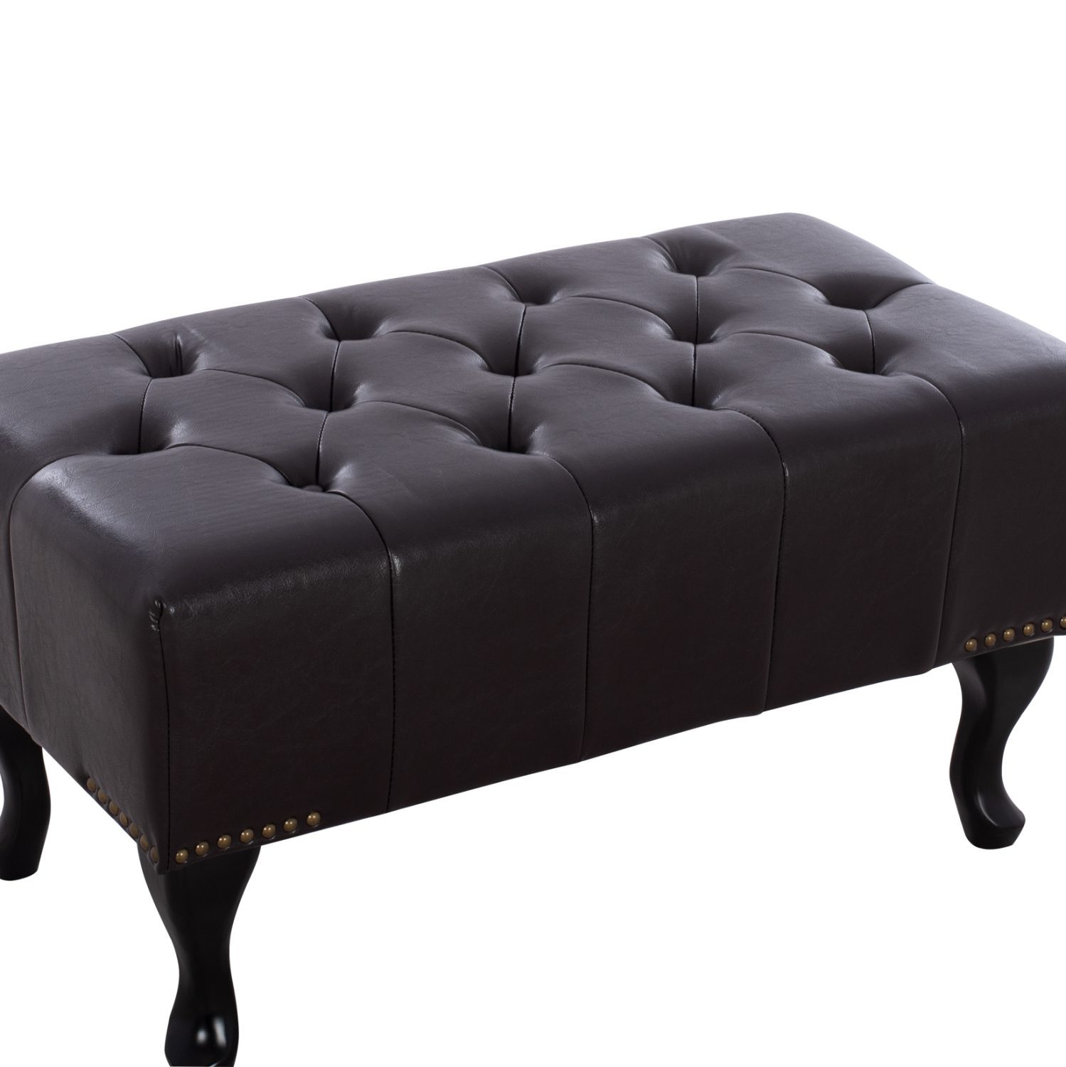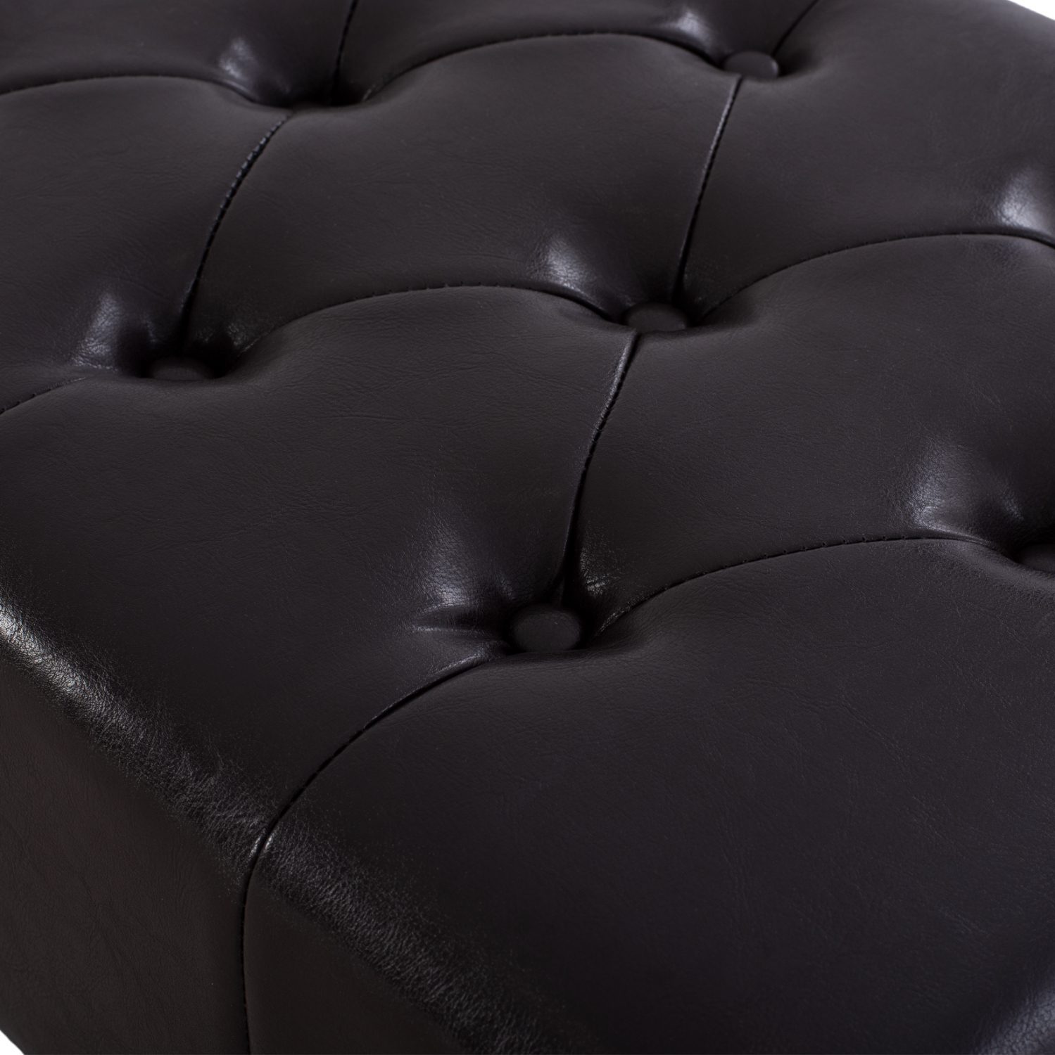 Ταμπουρέ-υποπόδιο τύπου Chesterfield EMMA από PU δέρμα, σε σκούρα καφέ απόχρωση.