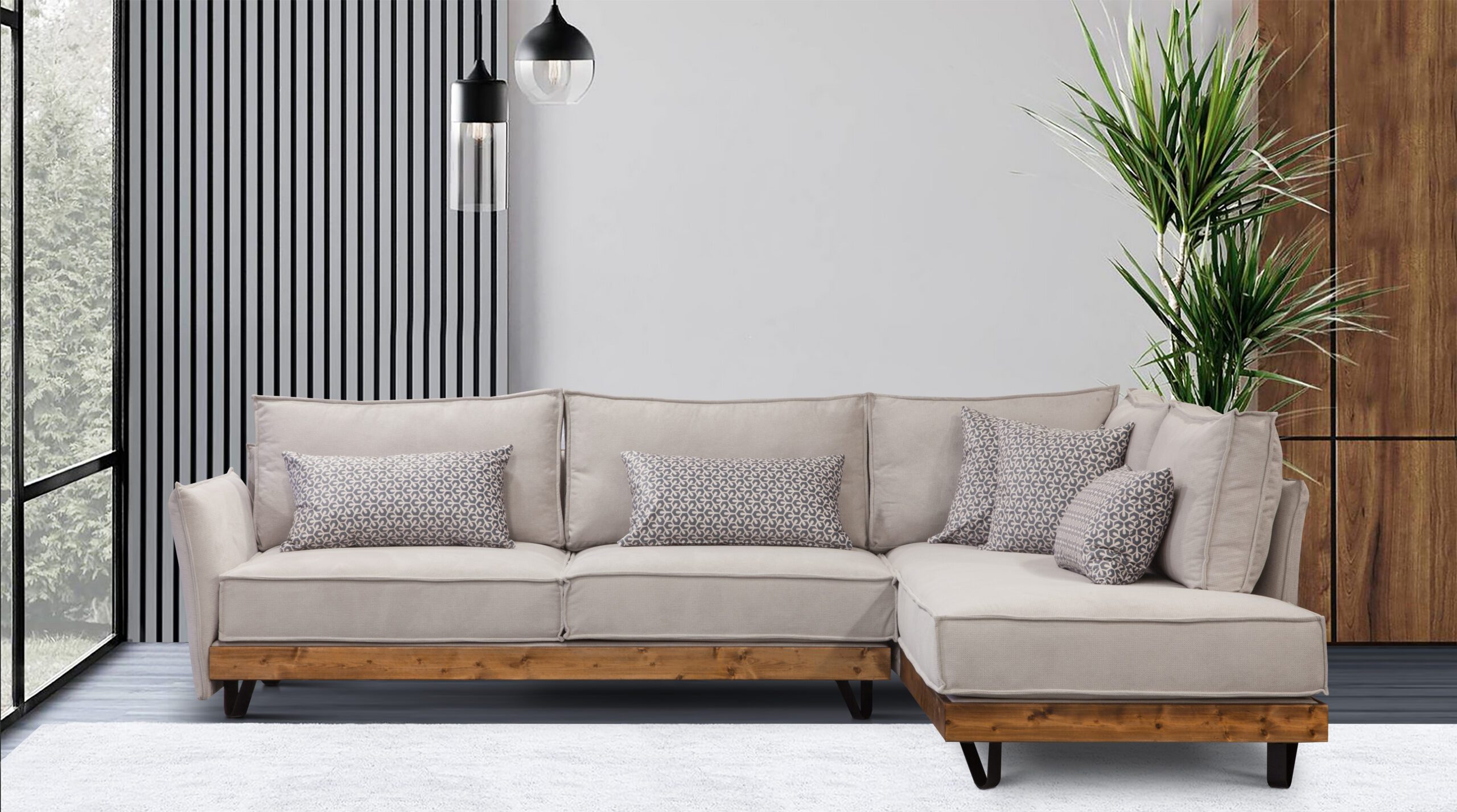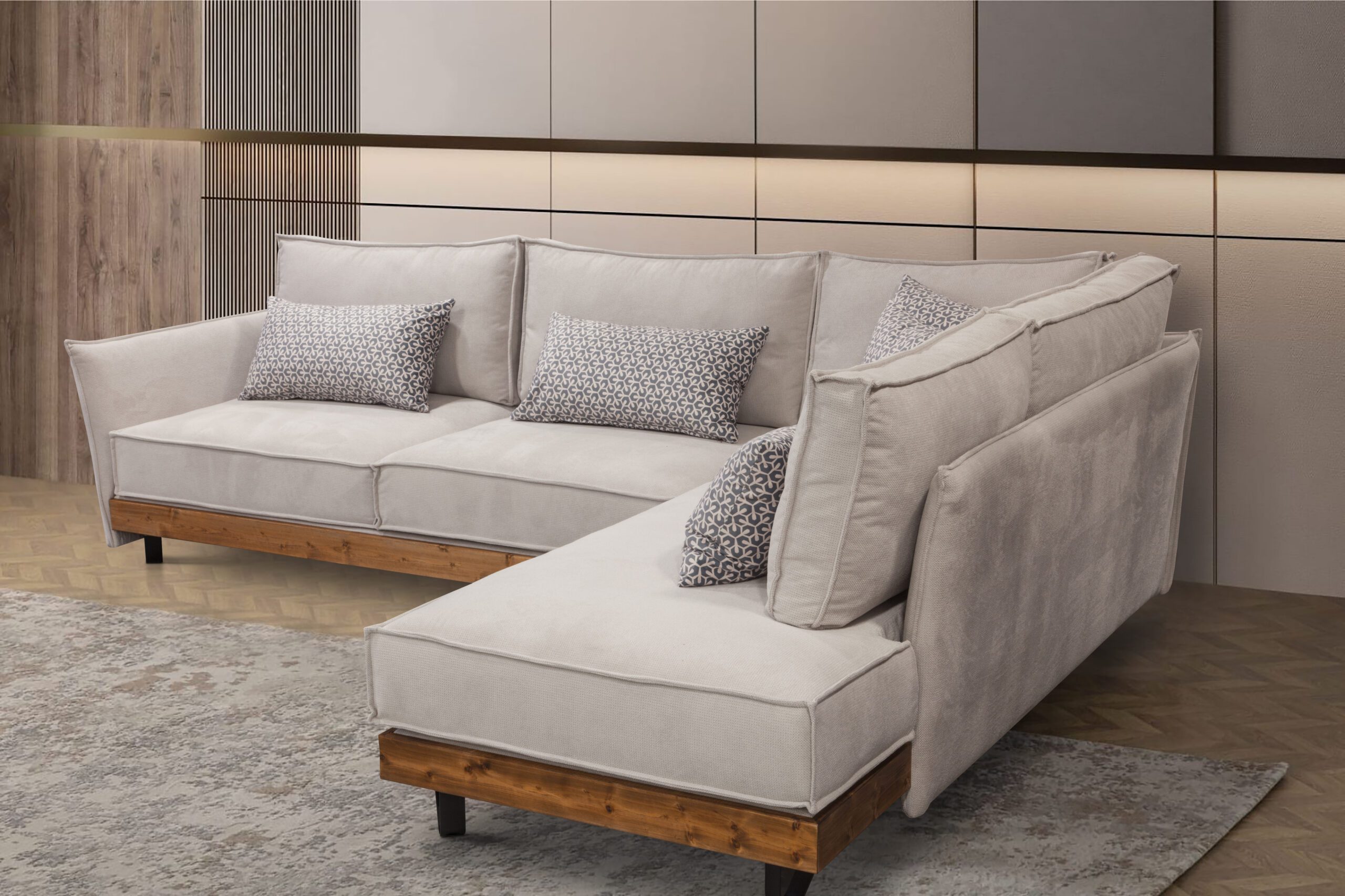 Ένα μοντέρνο σαλόνι με σκελετό από μασίφ ξύλο οξιάς, αφρώδη υλικά υψηλής ποιότητας και λάστιχο 4000S για άνεση και αντοχή. Προσφέρεται δυνατότητα επιλογής υφάσματος και αλλαγής διαστάσεων, ώστε να ταιριάζει απόλυτα στον χώρο σας.