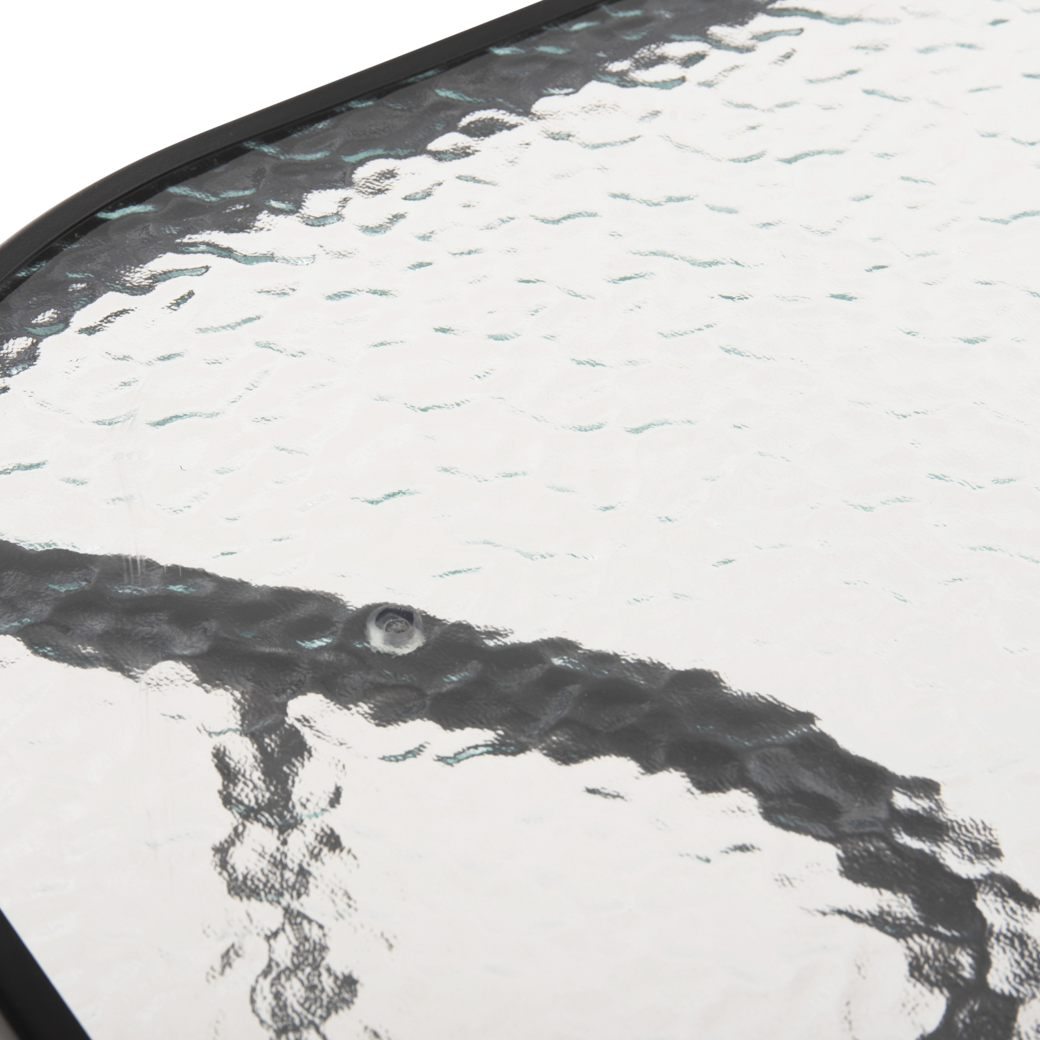 Το χαρακτηριστικό, όμως, αυτού του τραπεζιού είναι η επιφάνεια του. Αυτή είναι κατασκευασμένη από άθραυστο γυαλί ή γυαλί ασφαλείας. Το σκληρυμένο ή «άθραυστο» γυαλί είναι ένας τύπος γυαλιού ασφαλείας περίπου τέσσερις φορές ισχυρότερο από το συνηθισμένο γυαλί. Και σε αντίθεση με το συνηθισμένο γυαλί, το οποίο μπορεί να θρυμματιστεί σε οδοντωτά θραύσματα όταν σπάσει, το σκληρυμένο γυαλί σπάει σε μικρά, σχετικά ακίνδυνα κοκκώδη κομμάτια. Ως αποτέλεσμα, το σκληρυμένο γυαλί χρησιμοποιείται σε εκείνα τα περιβάλλοντα όπου η ανθρώπινη ασφάλεια αποτελεί προτεραιότητα, όπως οι οικιακές εφαρμογές κ.λπ.