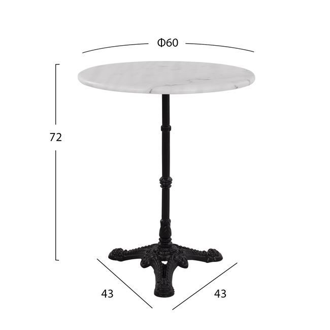 Το τραπέζι HM5608 είναι κατασκευασμένο από μάρμαρο σε λευκή απόχρωση ενώ η βάση του είναι κατασκευασμένη από μαντέμι σε μαύρη απόχρωση.