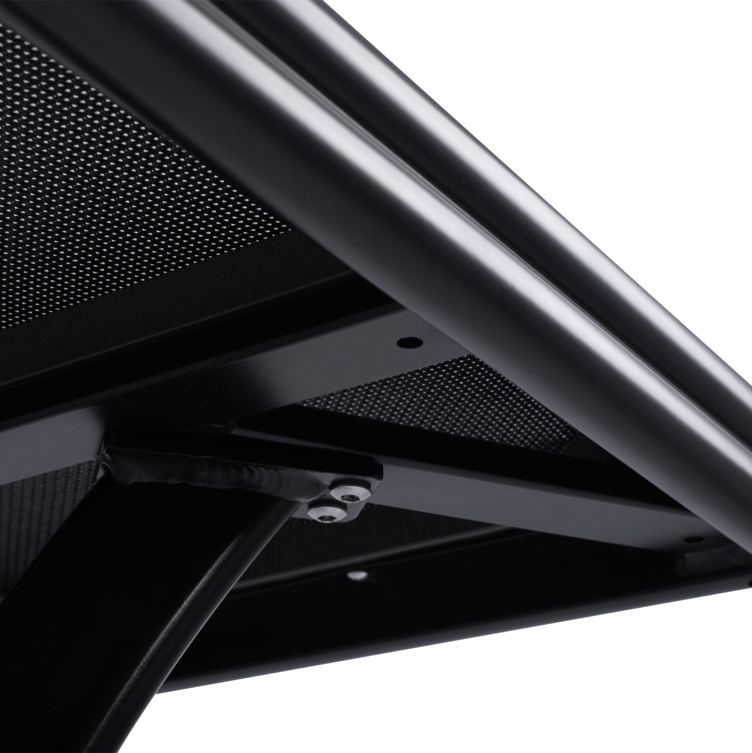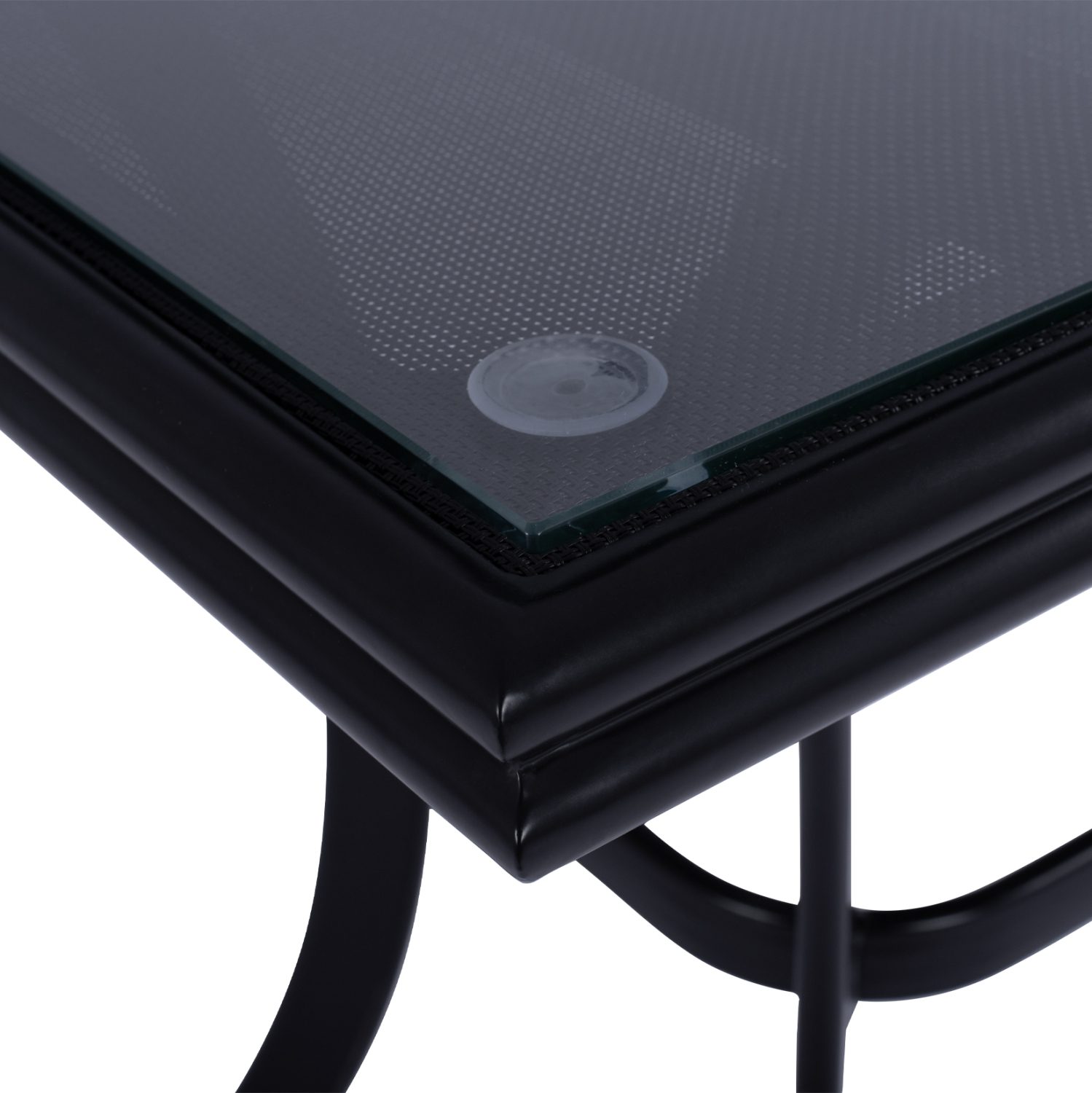 Το JAXEN είναι ένα ορθογώνιο τραπέζι για εξωτερικούς χώρους με σκελετό αλουμινίου σε χρώμα ΜΑΥΡΟ, με καμπυλωτή διάταξη ποδιών που συνδέονται μεταξύ τους και με ένα οβάλ «δαχτυλίδι» για μεγαλύτερη στιβαρότητα. Αυτό που τραβάει τα βλέμματα, όμως, είναι η επιφάνεια του τραπεζιού που αποτελείται από τρυπητό textilene σε ΜΑΥΡΟ χρώμα με top γυαλί ασφαλείας. Πρόκειται για ένα όμορφο τραπέζι σε ικανοποιητική διάσταση, που μπορεί να εξυπηρετήσει 4 έως 6 άτομα.