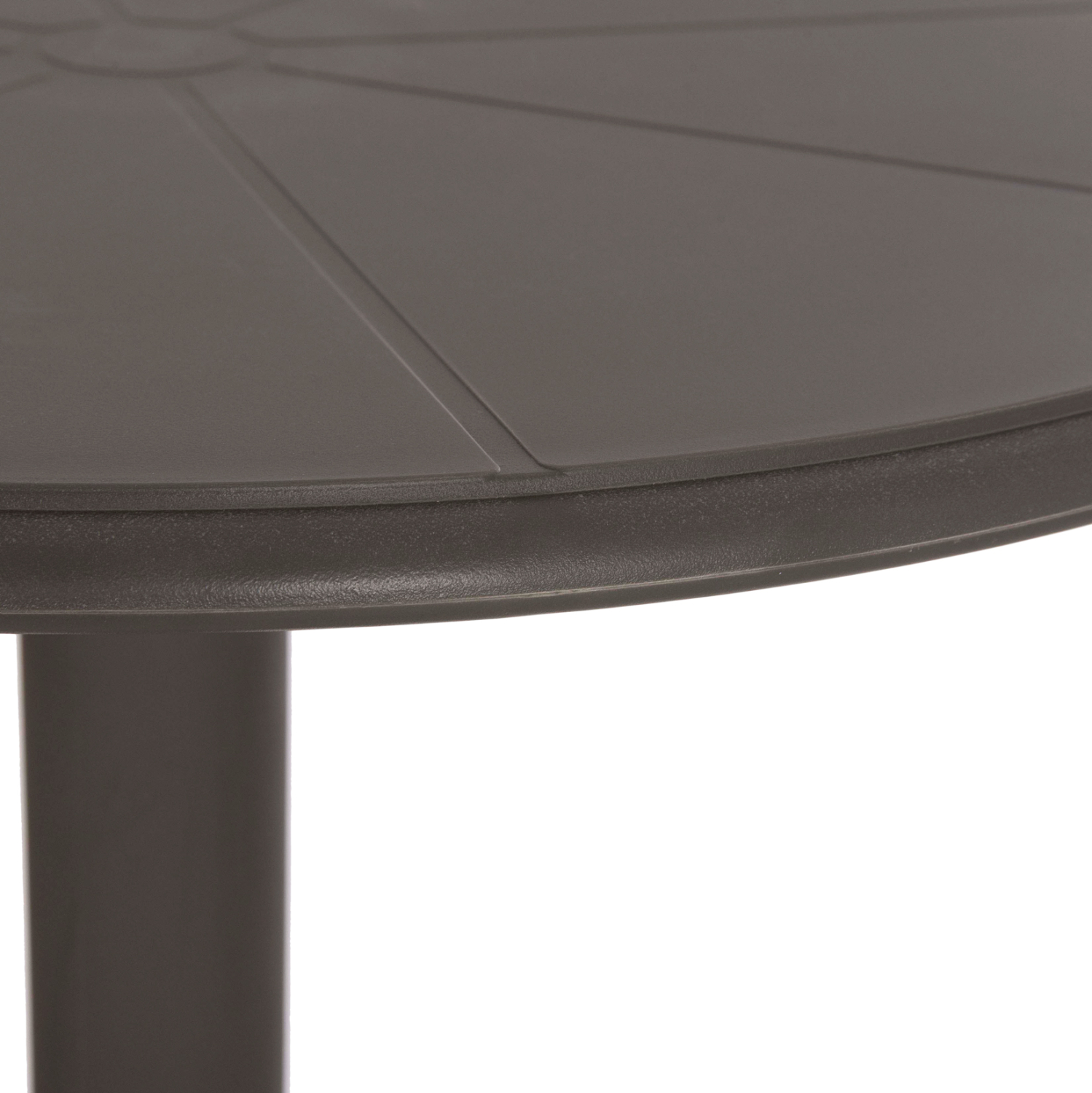 Το ψηλό τραπέζι για μπαρ πολυπροπυλενίου TERRIN σε DARK OLIVE GREEN χρώμα είναι η ιδανική πρόταση για χρήση σε εξωτερικούς χώρους, είτε επαγγελματικούς (κυρίως), είτε για το σπίτι. Το τραπέζι είναι στρογγυλό, ενώ η στήριξη γίνεται με μια κολώνα στο κέντρο που καταλήγει σε 4 πόδια («νύχια»).